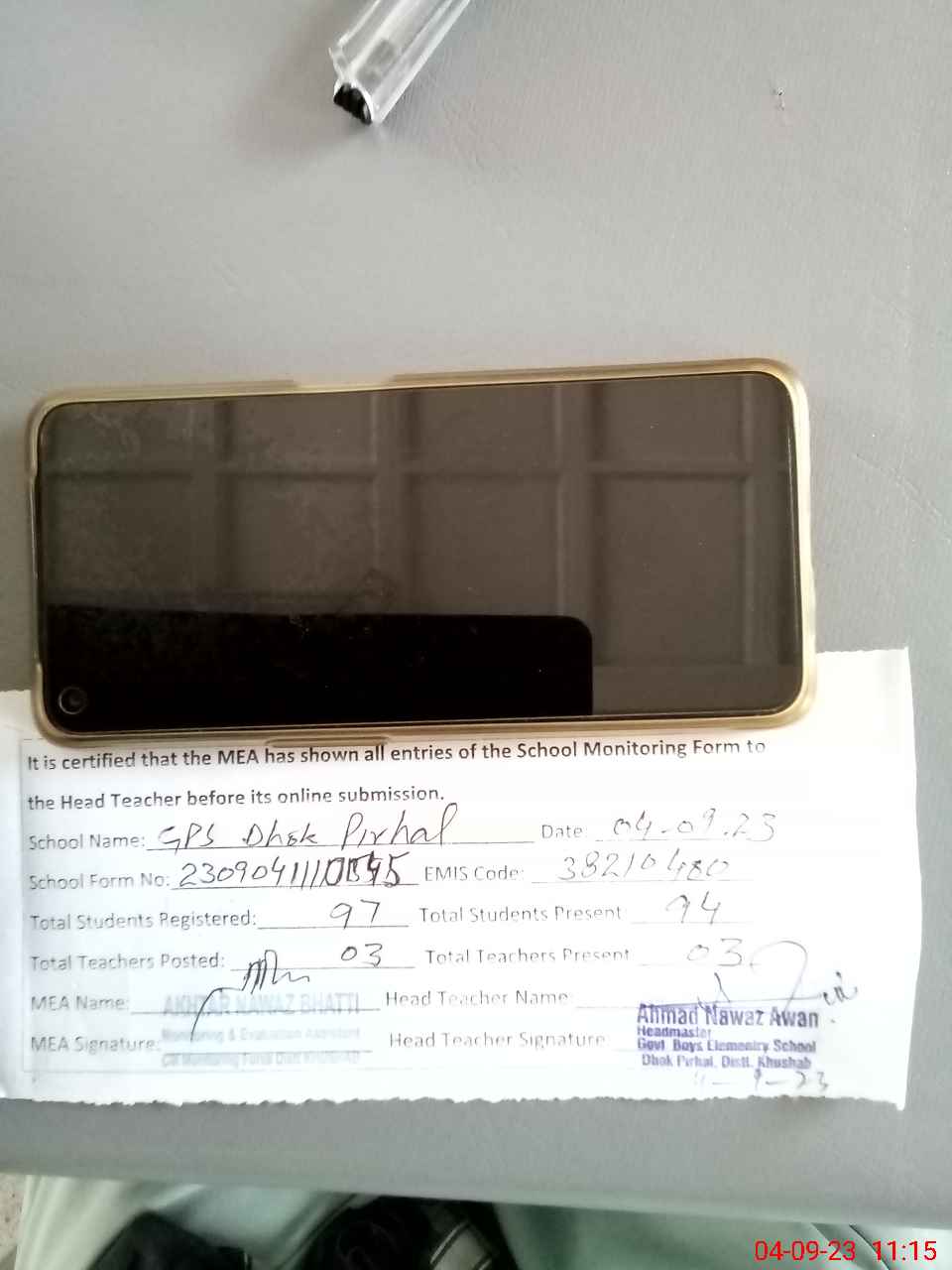 | Attendance Register | Head Teacher | MEA with School | Visit Proof |