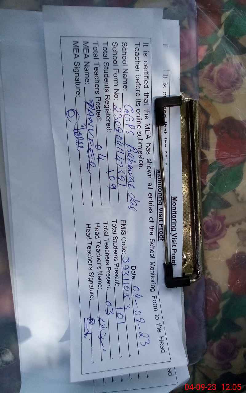 | EMIS Code: 39311053 | Name of School: GGPS BAHAWAL DAS | |||