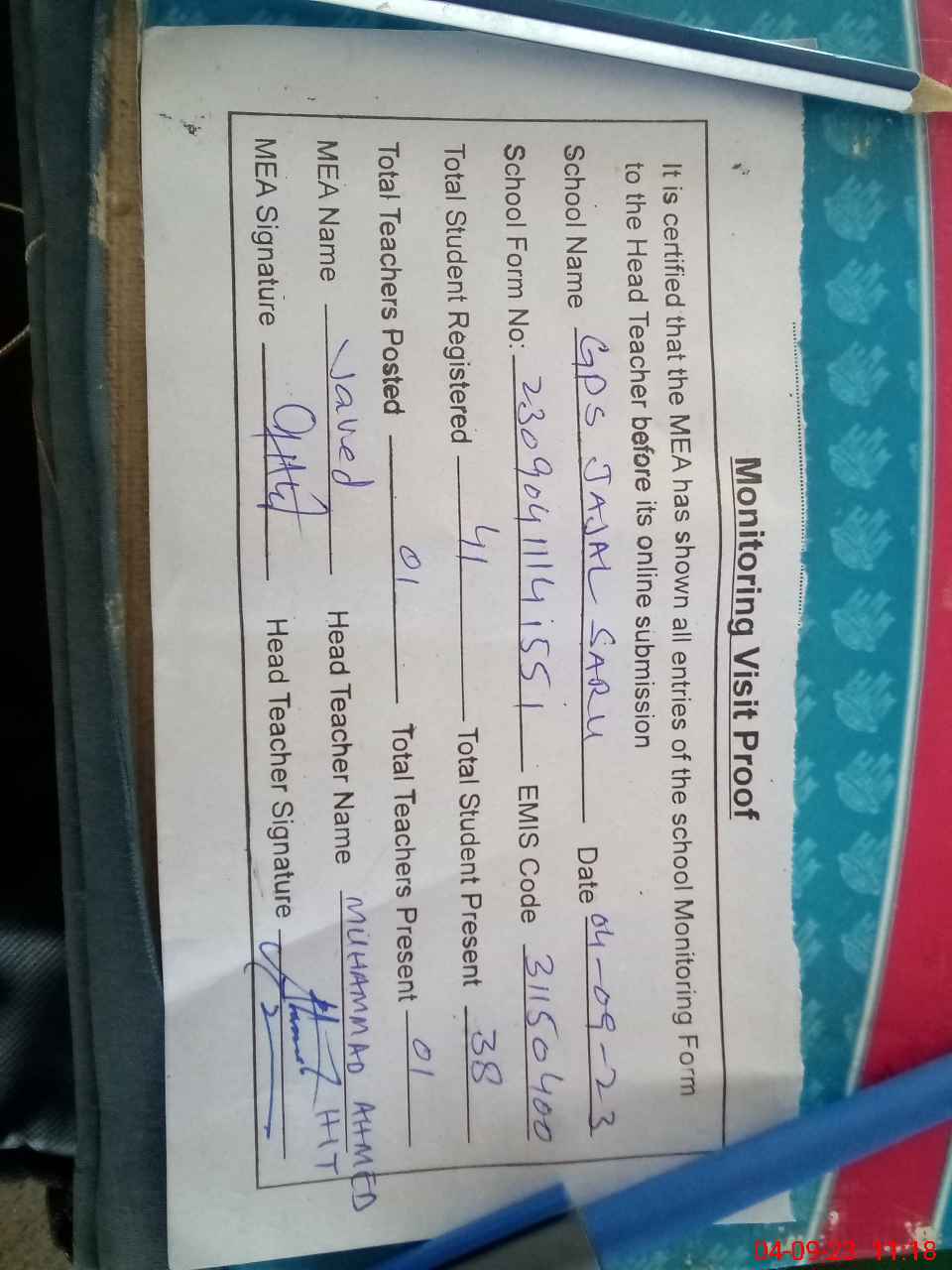 | EMIS Code: 31150400 | Name of School: GPS JAJJAL SARU | |||