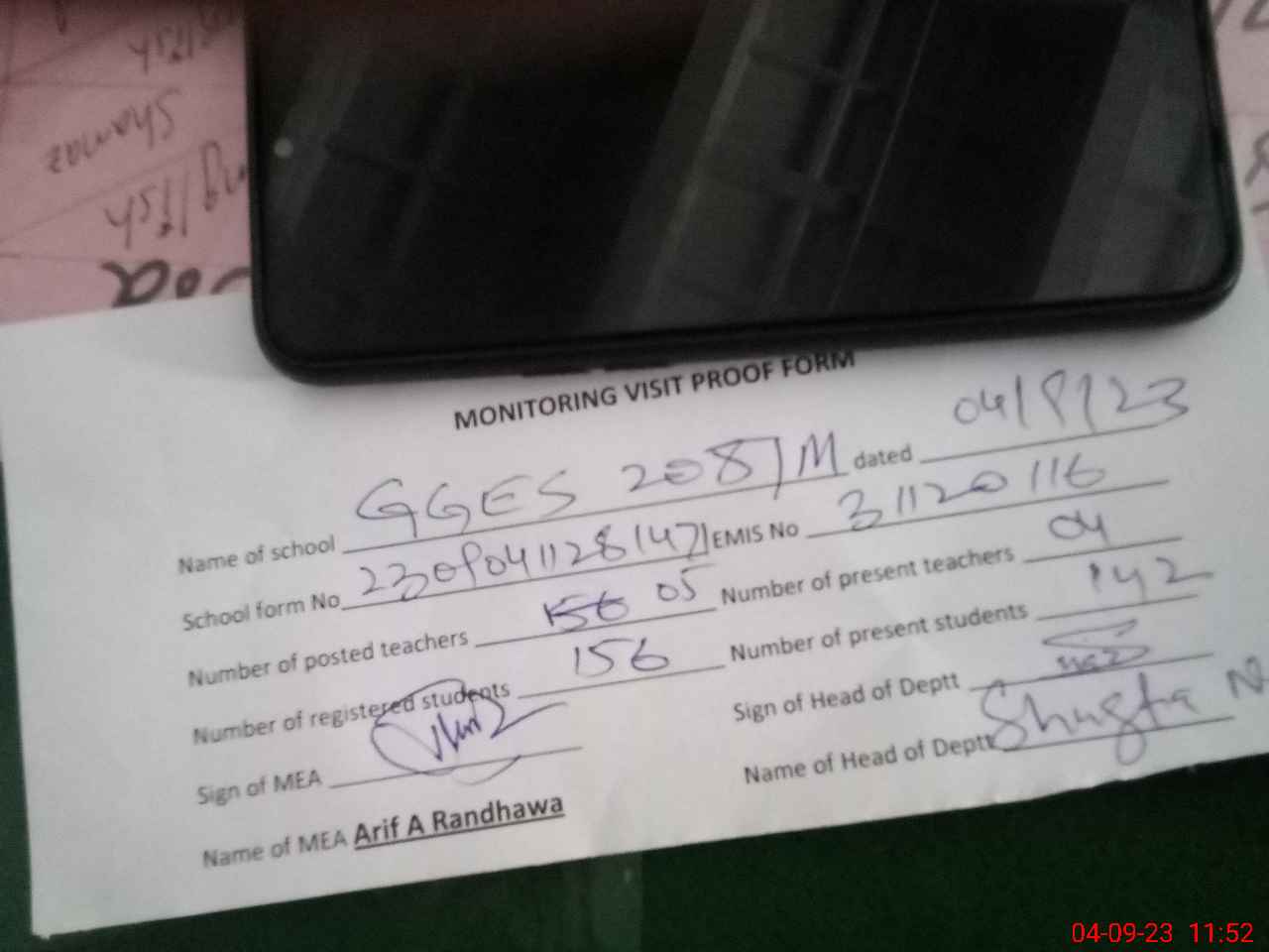 | EMIS Code: 31120116 | Name of School: GGES CHAK NO. 208 M | |||