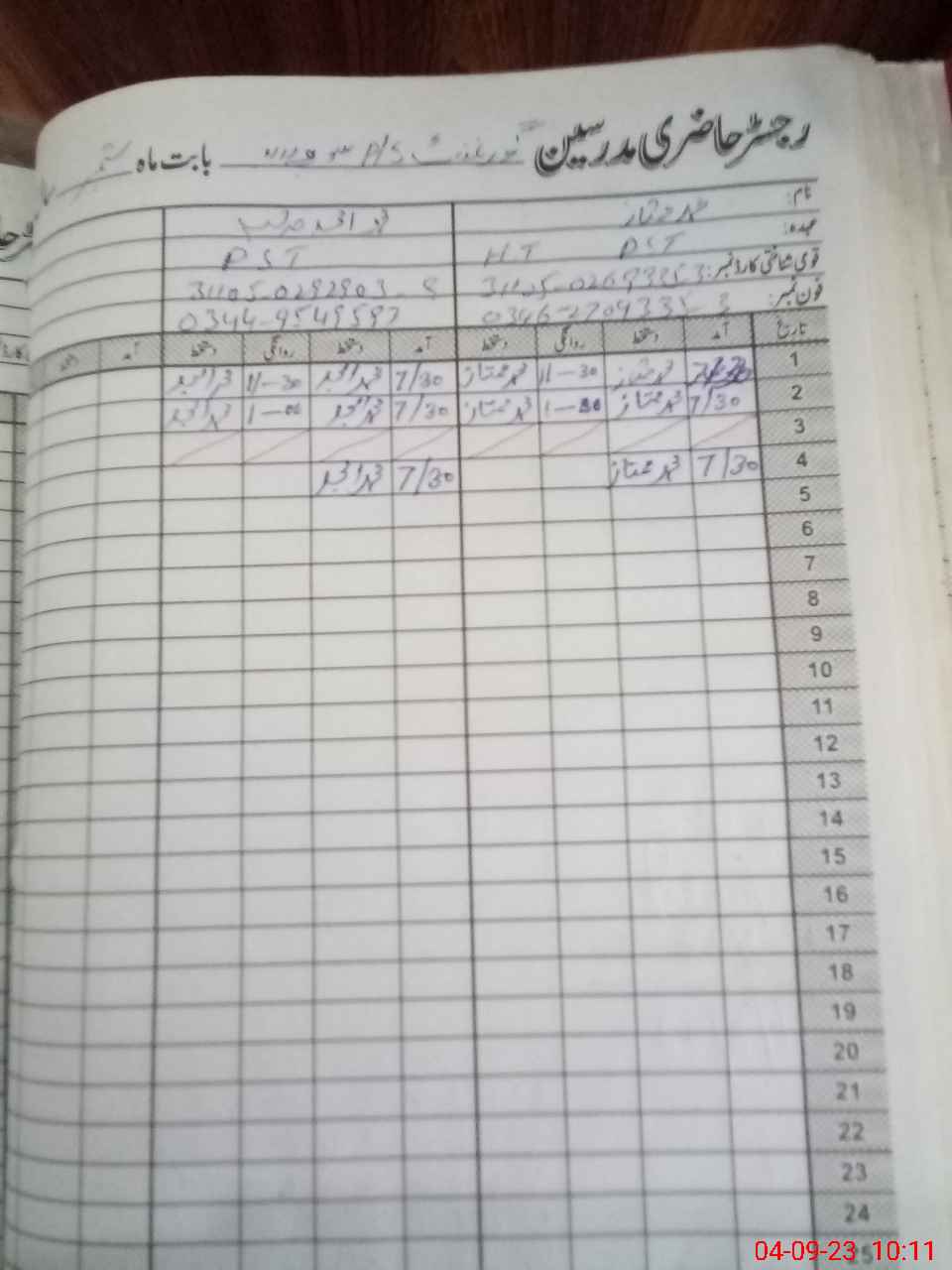| Name: MU**** MU**** Designation: (School Headmaster's/Headmistress's) PST Phone/Cell Number: 03**** |