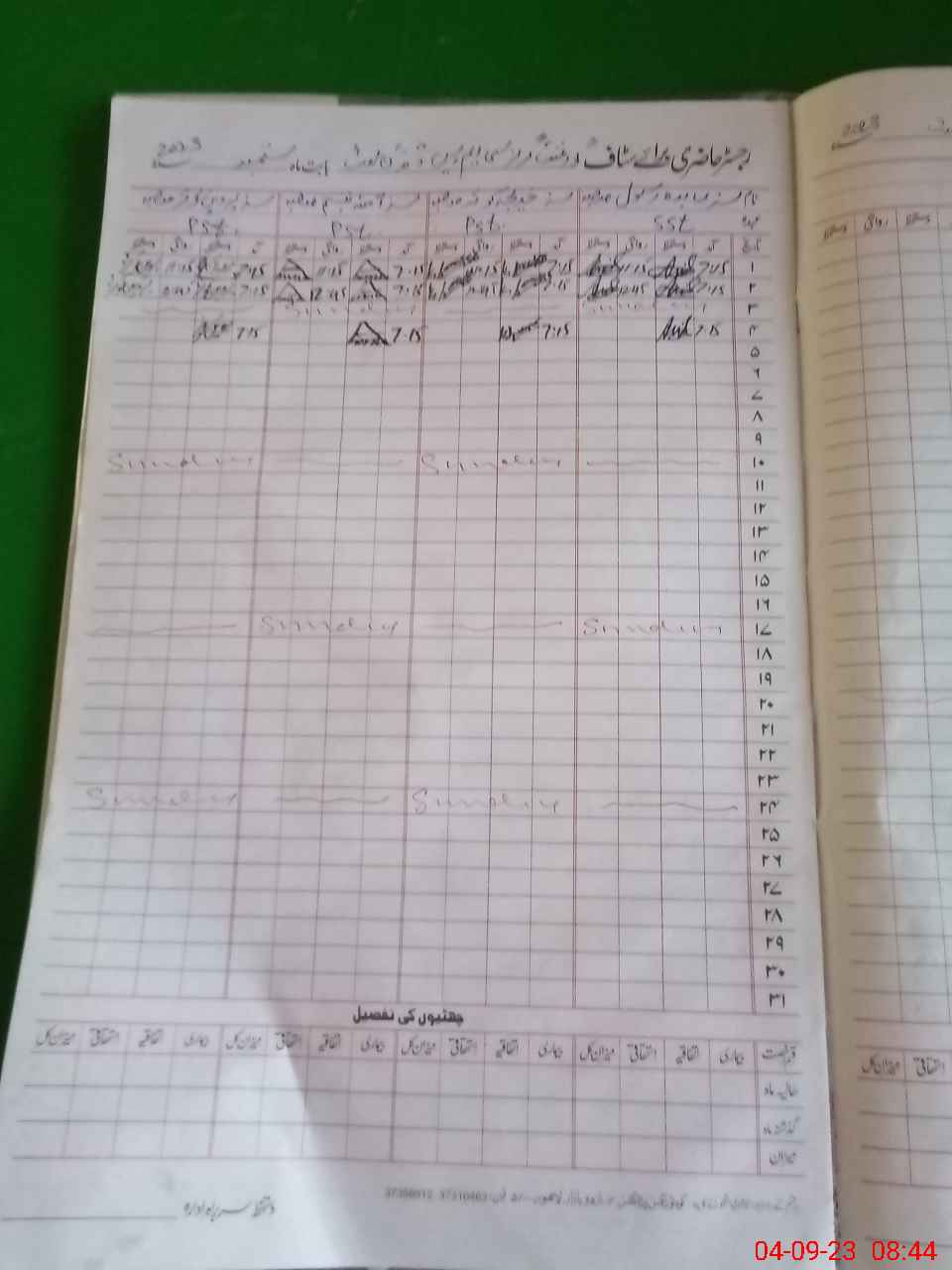 | CNIC | Full Name | Designation | R/C | Absence During Last Calender Month |