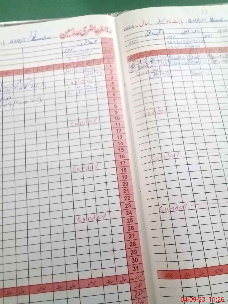| CNIC | Full Name | Designation | R/C | Absence During Last Calender Month |