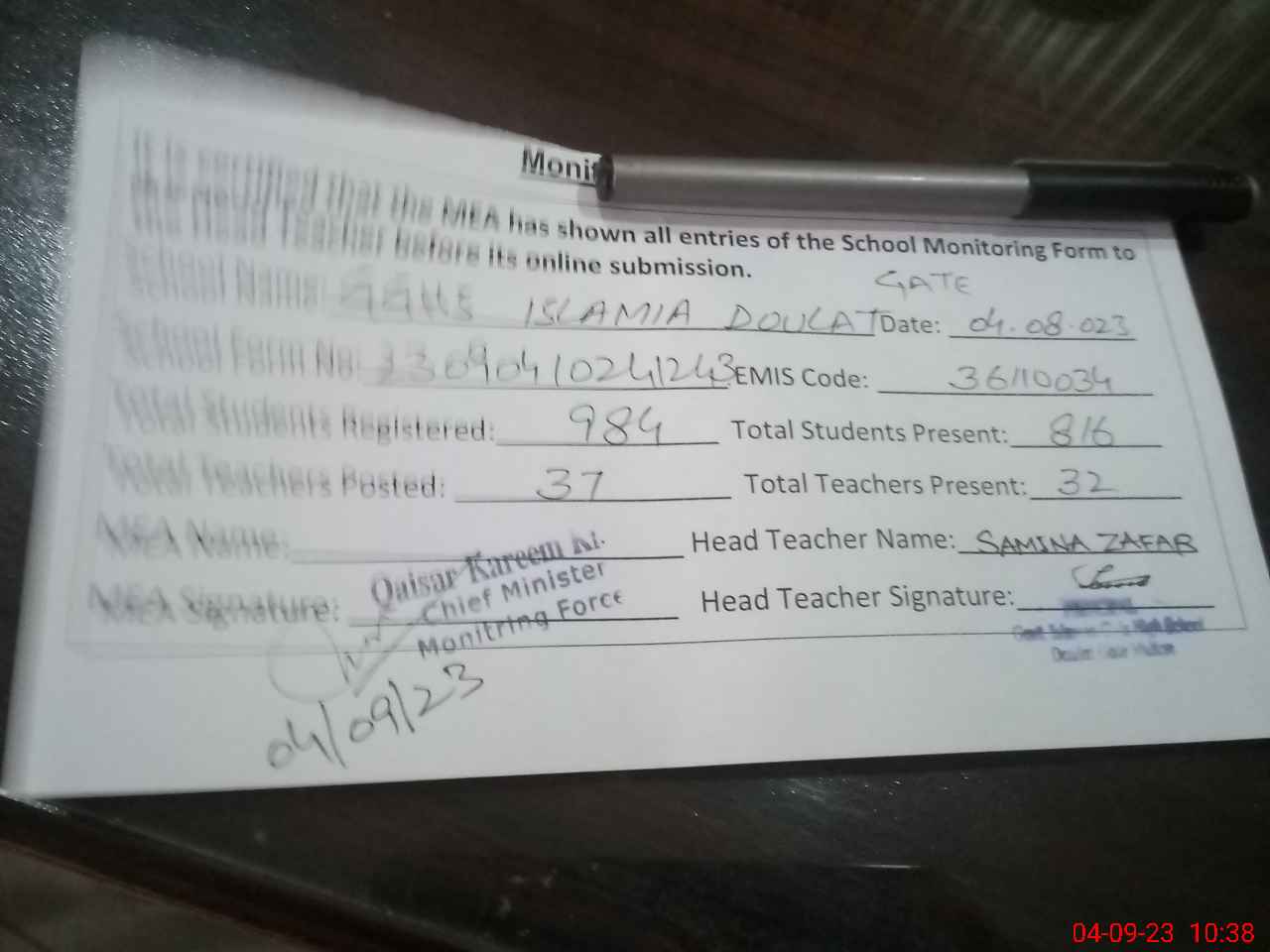| Monitoring Date: 04-09-2023 | Start Time: 04-09-2023 09:59 AM | End Time: 04-09-2023 10:45 AM | Name of MEA: Qa**** Ka**** Kh**** | |
