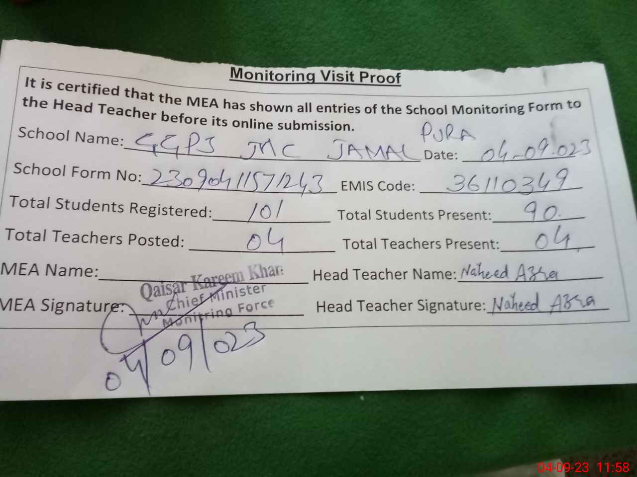 | EMIS Code: 36110349 | Name of School: GGPS MC JAMAL PURA | |||