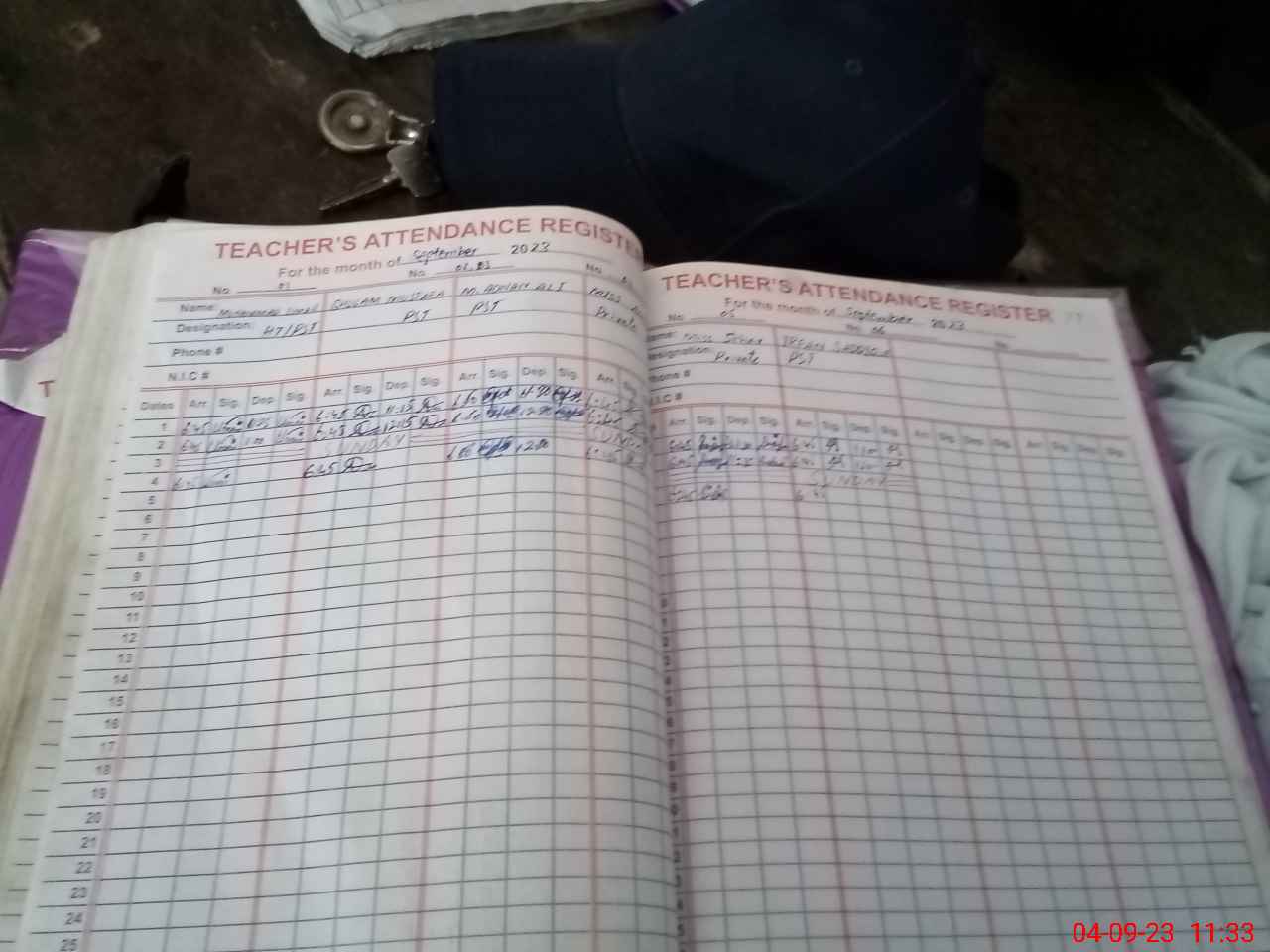 | CNIC | Full Name | Designation | R/C | Absence During Last Calender Month |