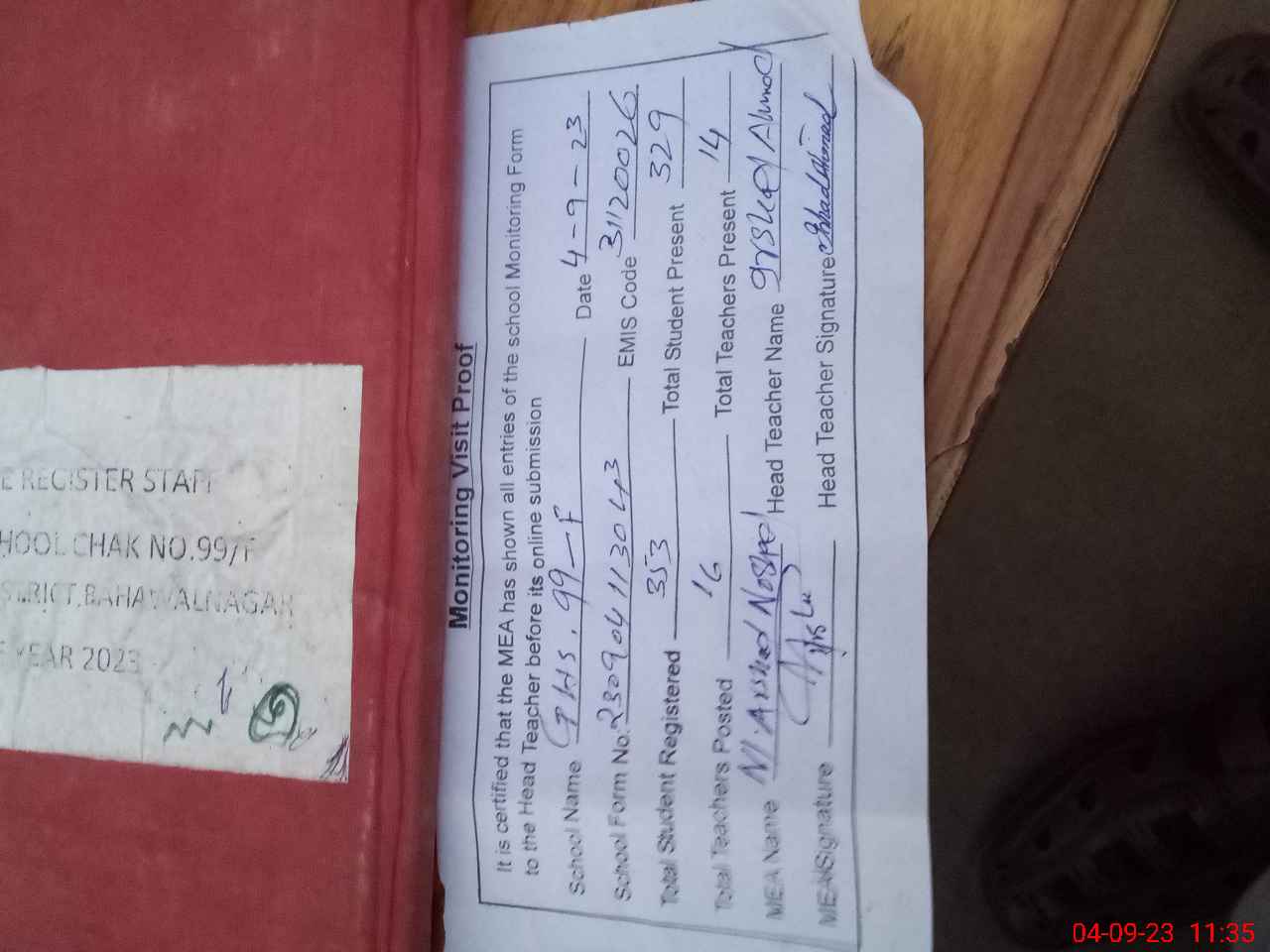 | EMIS Code: 31120026 | Name of School: GHS CHAK NO. 99/F | |||