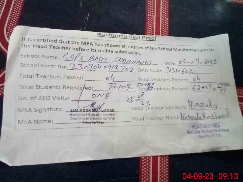 | EMIS Code: 31310602 | Name of School: GGPS BASTI SHAH NAWAZ | |||