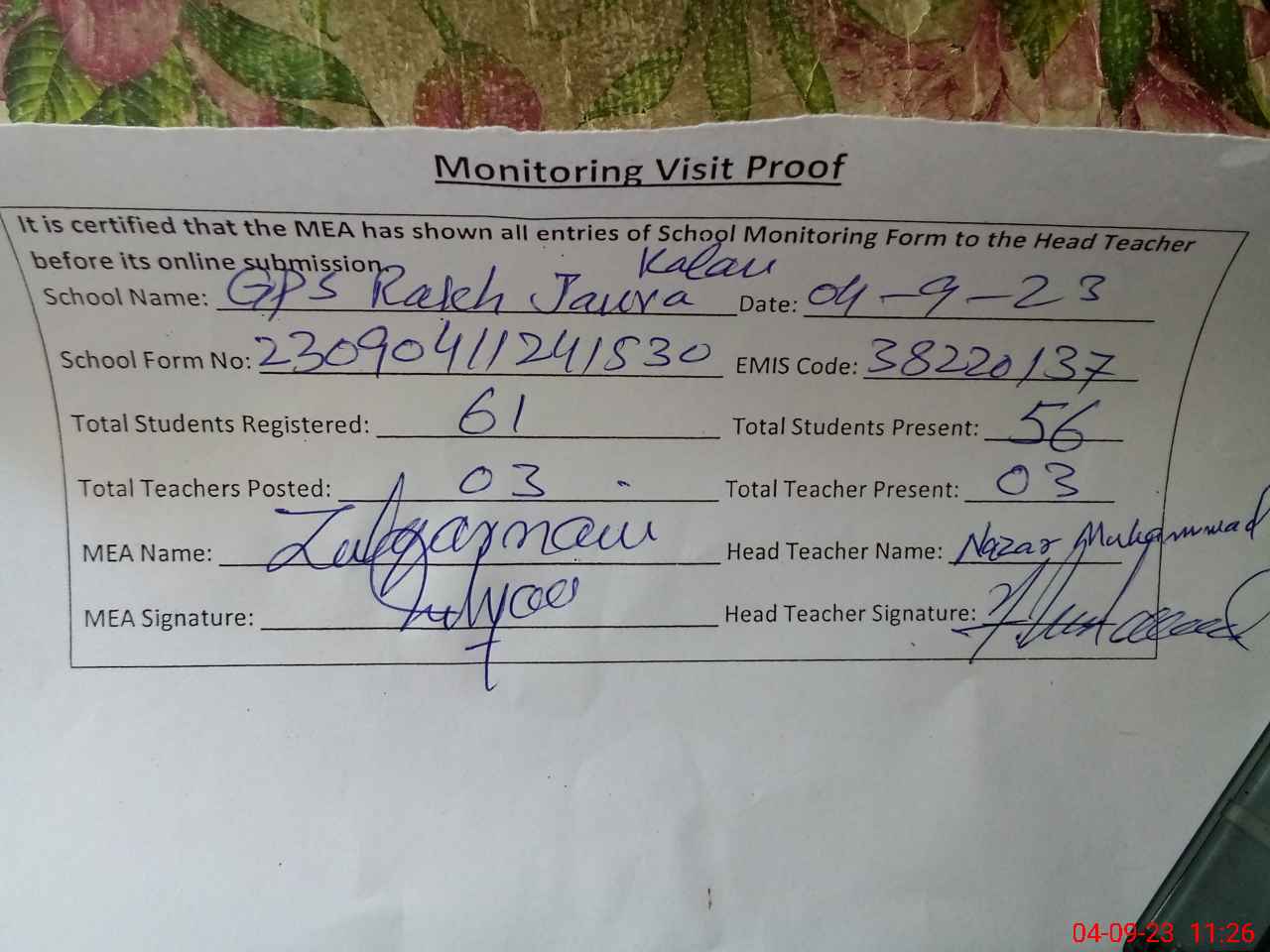 | EMIS Code: 38220137 | Name of School: GPS RAKH JAURA KALAN | |||