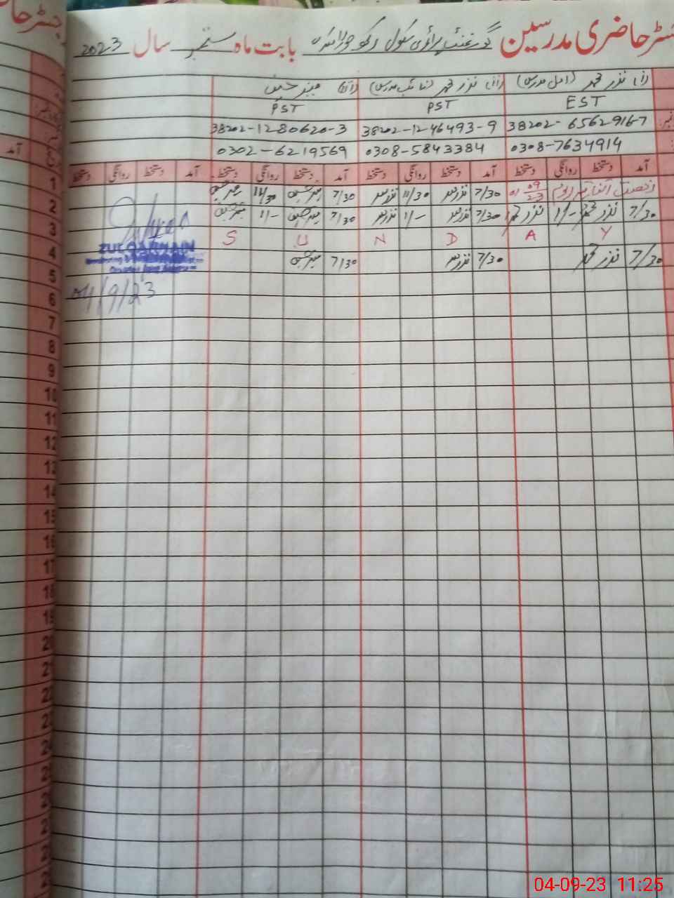 | Name: Na**** Mu**** Designation: (School Headmaster's/Headmistress's) Est Gen Phone/Cell Number: 03**** |