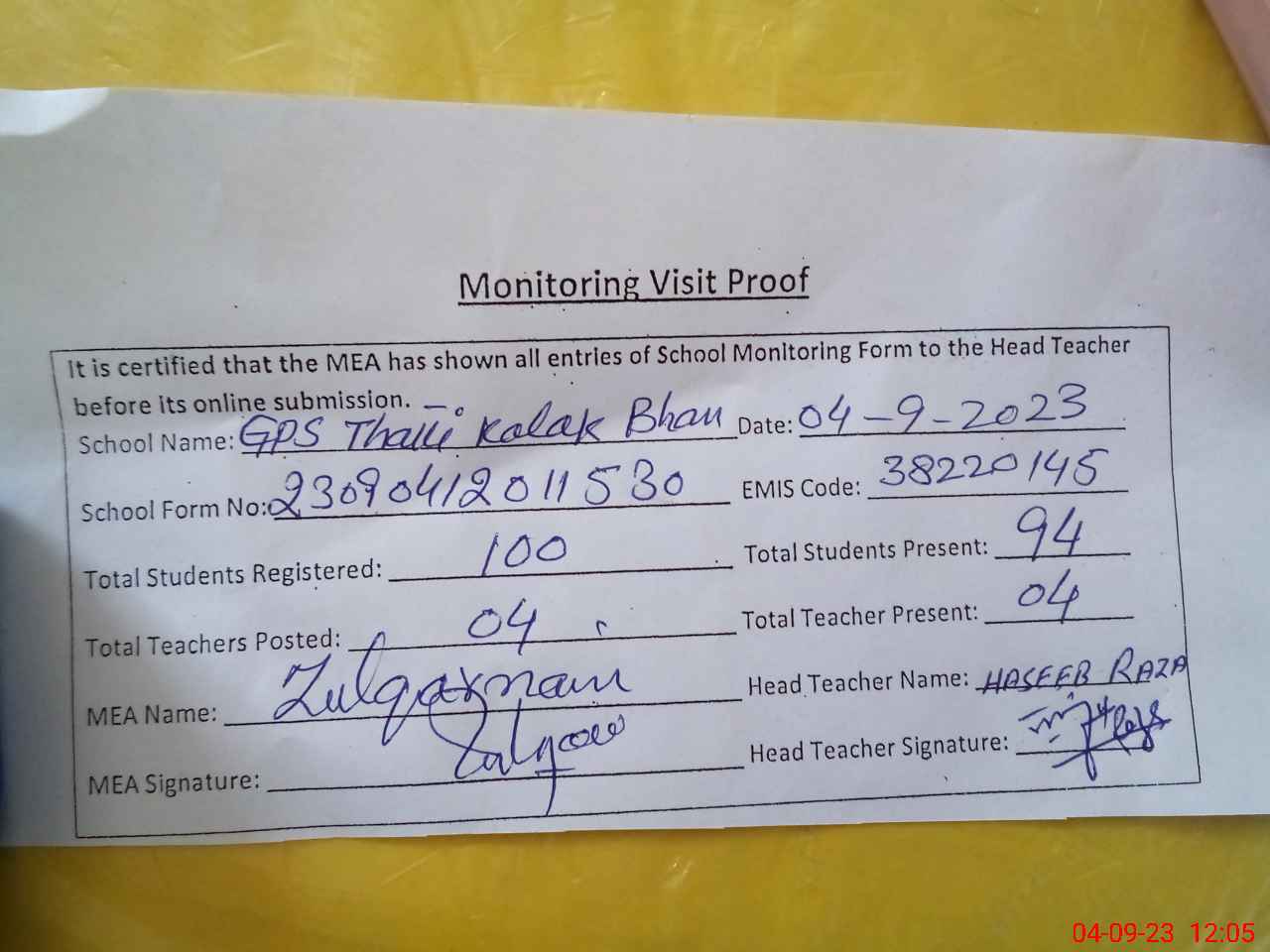 | EMIS Code: 38220145 | Name of School: GPS THATTI KALAK BHAN | |||