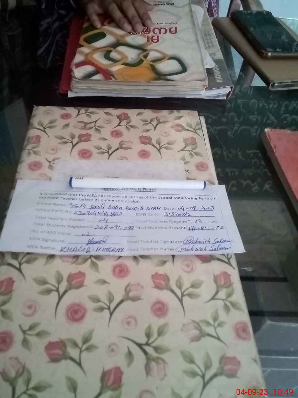 | Attendance Register | Head Teacher | MEA with School | Visit Proof |