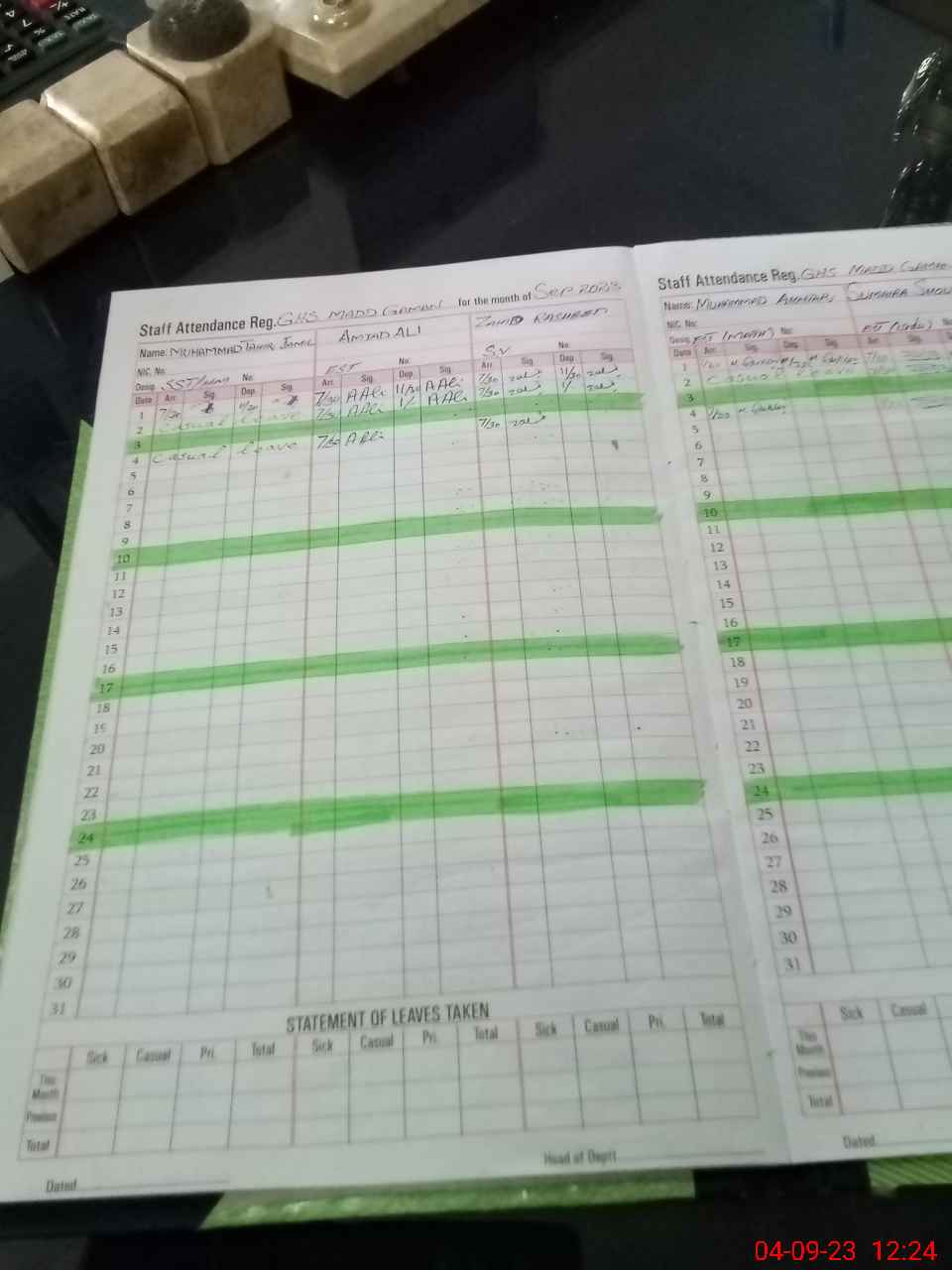 | Leave | Duty | Absent | Maternity | Medical | Ex- Pak |