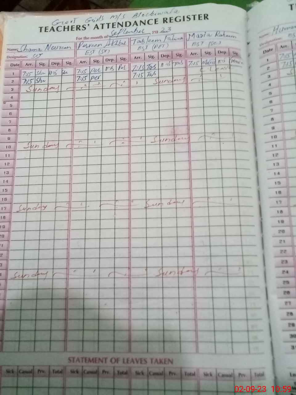 | Leave | Duty | Absent | Maternity | Medical | Ex- Pak |