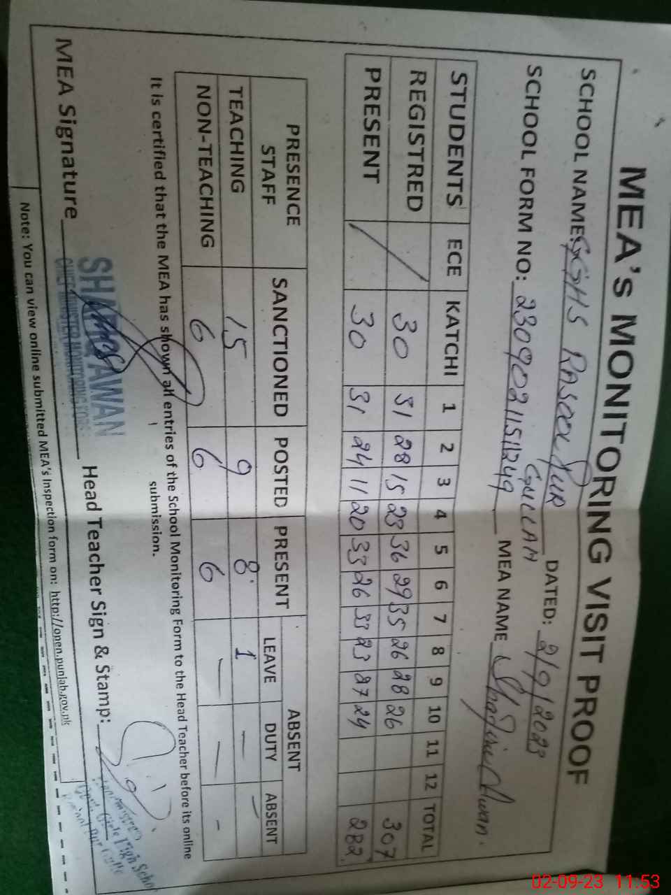 | EMIS Code: 36410494 | Name of School: GGHS RASOOL PUR GULLA, NAWAN SHEHR | |||