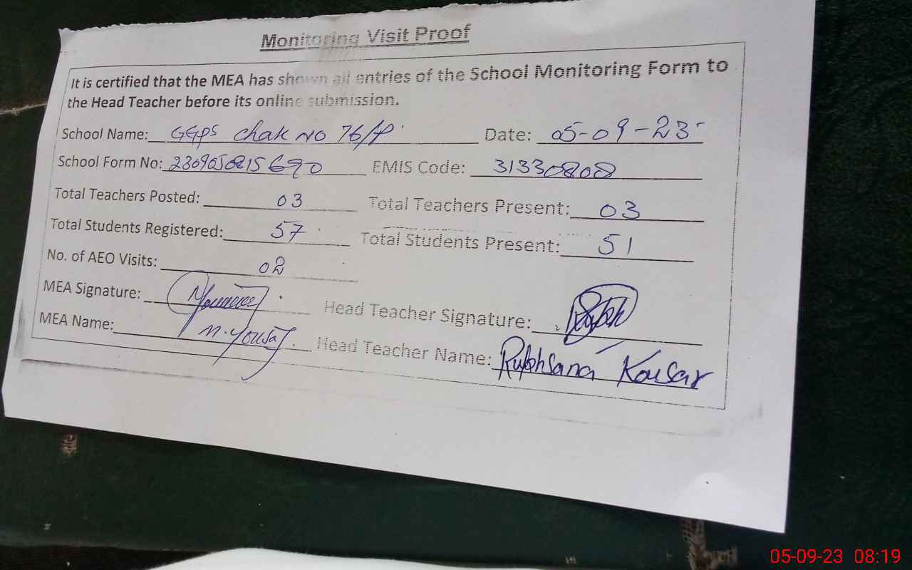 | EMIS Code: 31330808 | Name of School: GGPS CHAK 76/P | |||
