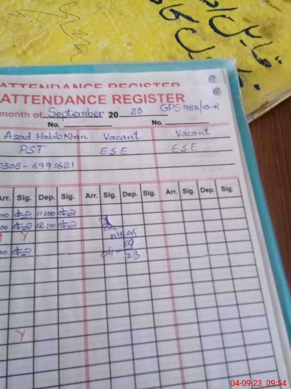 | Name: SH**** RA**** Designation: (School Headmaster's/Headmistress's) PST Phone/Cell Number: 03**** |