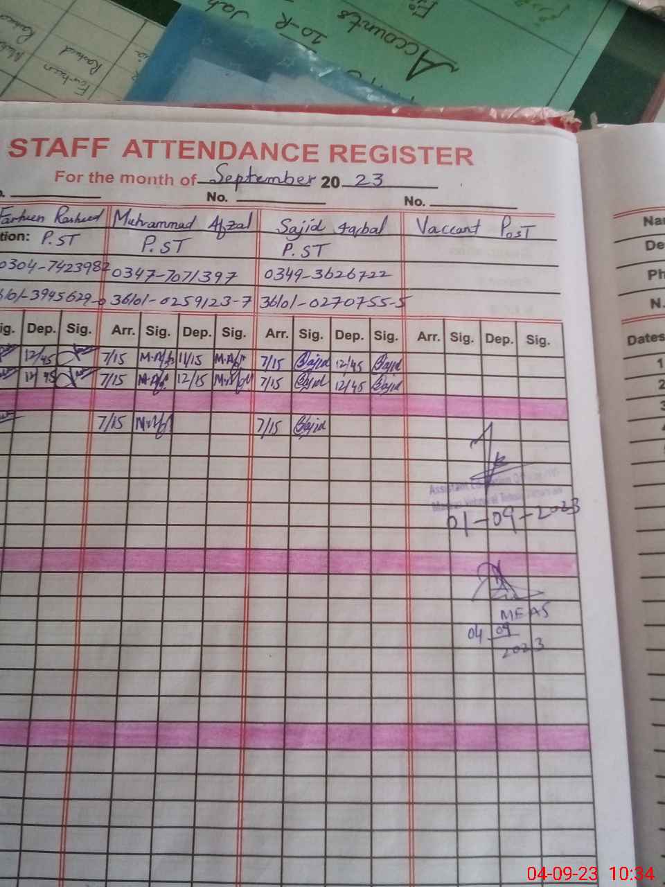 | Name: Fa**** Ra**** Designation: (School Headmaster's/Headmistress's) Ese Sci Math Phone/Cell Number: 03**** |