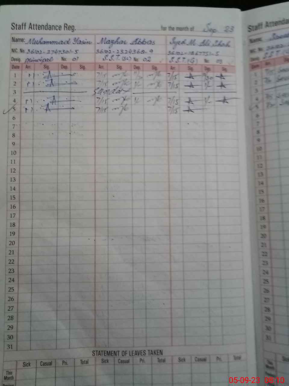 | 36**** | Mu**** Ya**** | PRINCIPAL | Temporary | 1 | 0 | 0 | 0 | 0 | 0 | 0 | 0 | 1 | Present |
