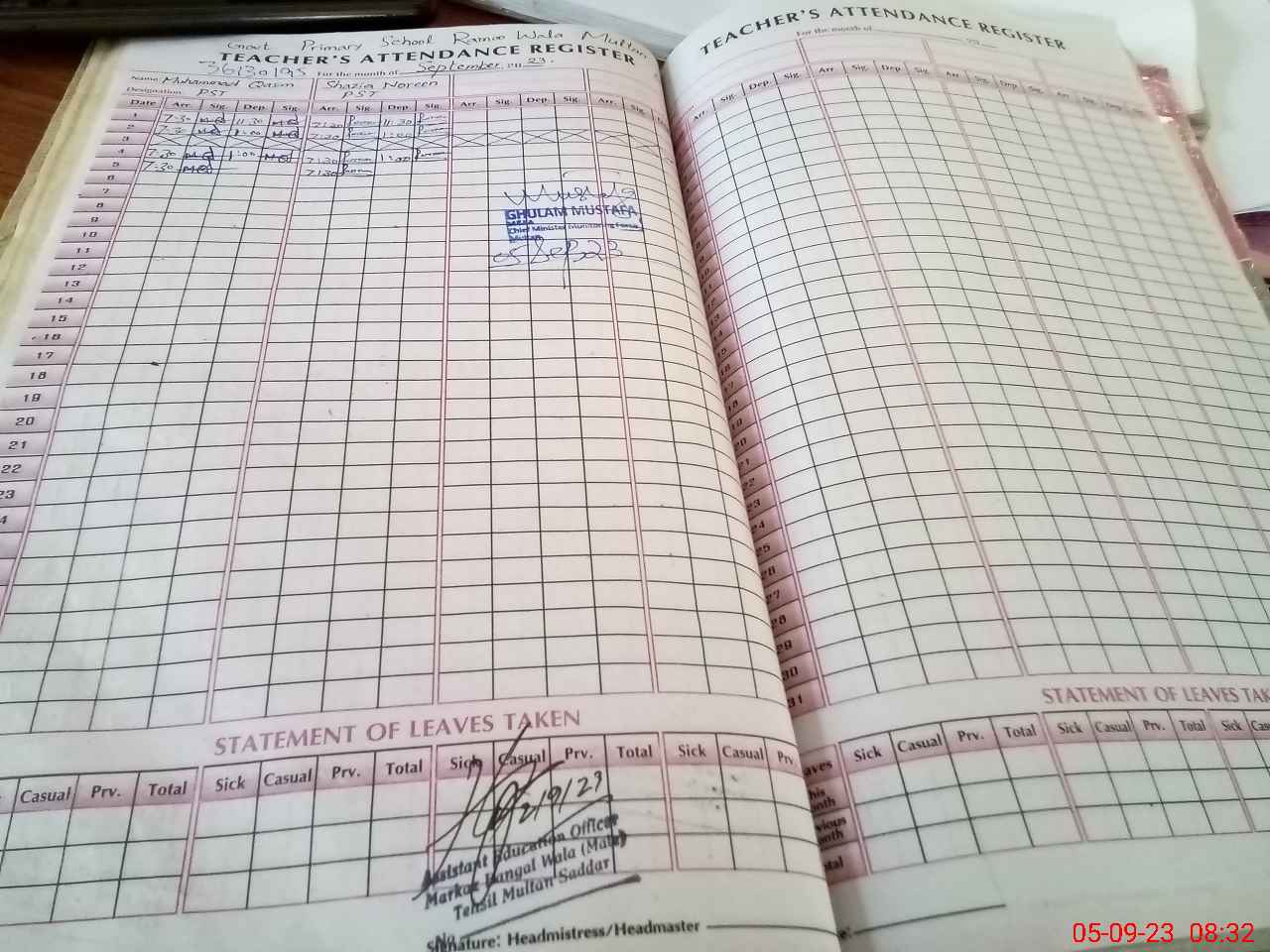 | Name: Mu**** Qa**** Designation: (School Headmaster's/Headmistress's) PST Phone/Cell Number: 03**** |