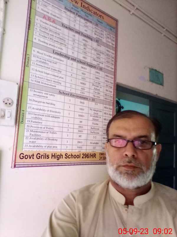 | EMIS Code: 31130023 | Name of School: GGHS CHAK NO 296 HR | |||
