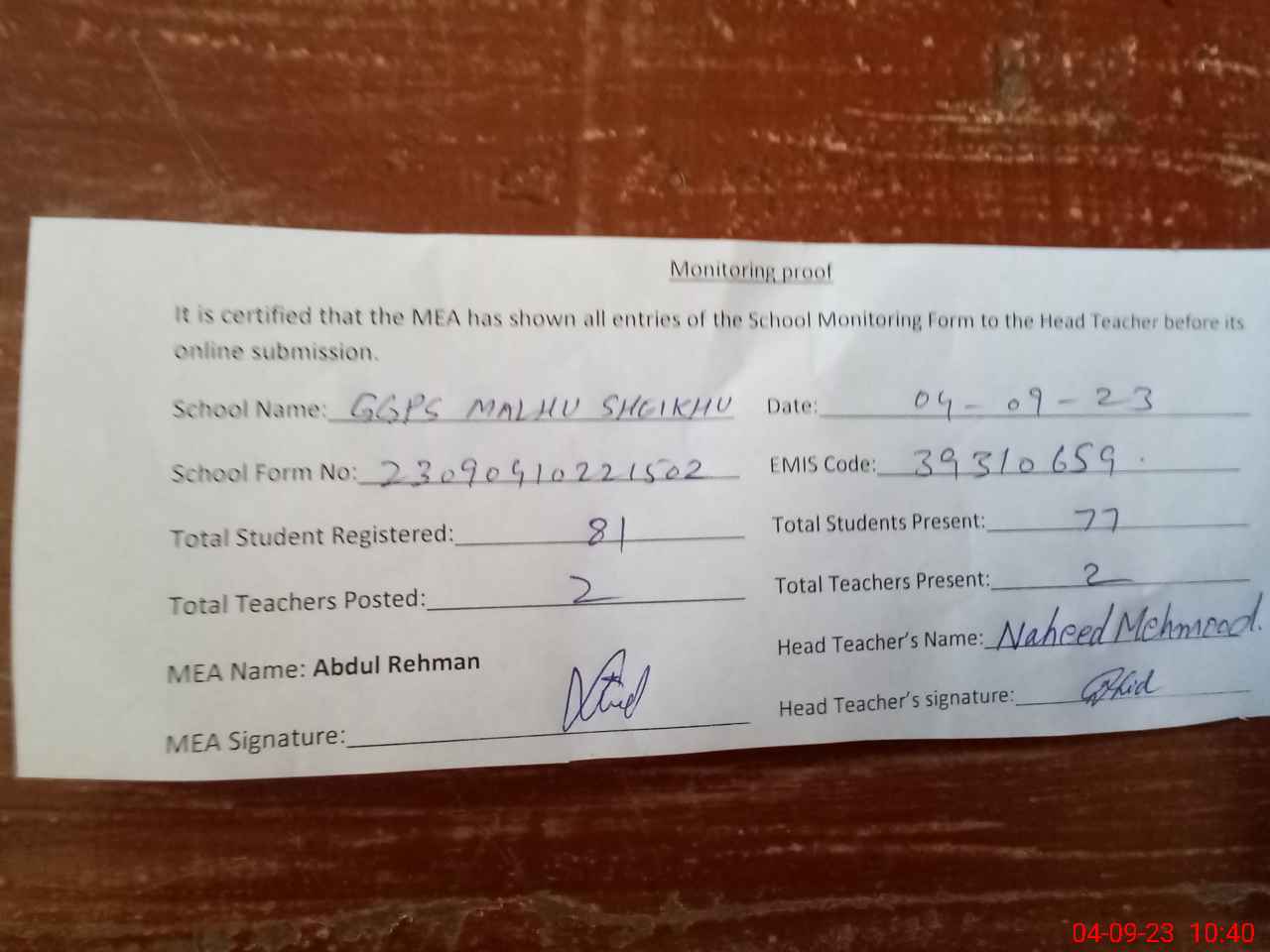 | EMIS Code: 39310659 | Name of School: GGPS MALHU SHEIKHU KA | |||