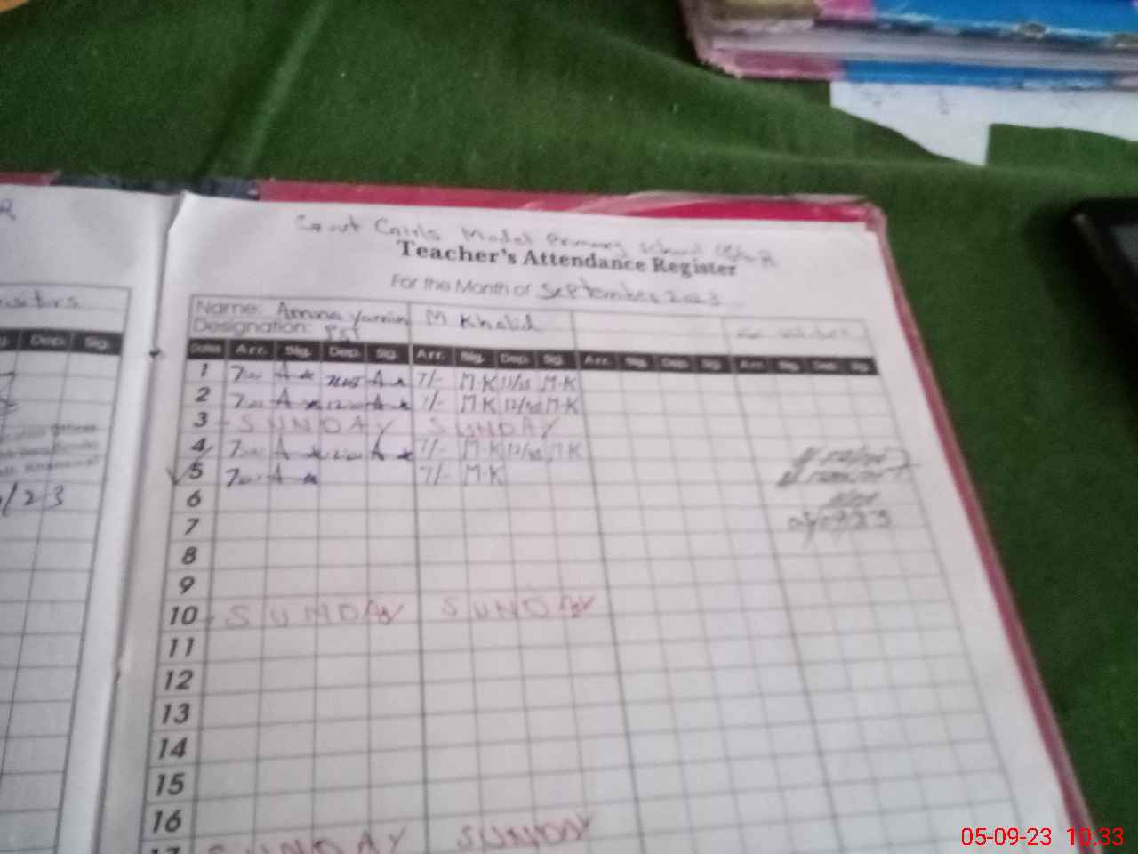 | Name: AM**** YA**** Designation: (School Headmaster's/Headmistress's) PST Phone/Cell Number: 03**** |