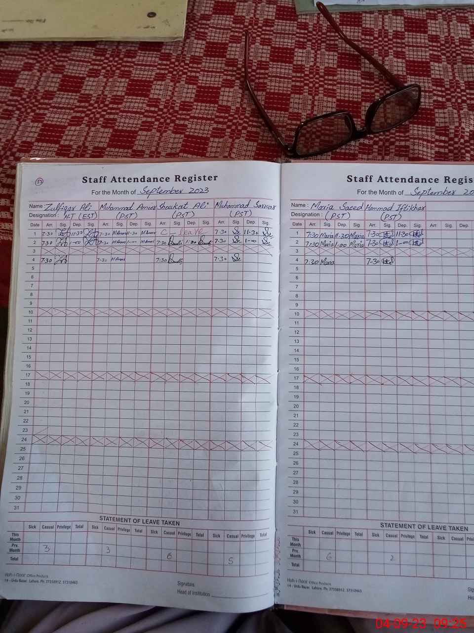 | Leave | Duty | Absent | Maternity | Medical | Ex- Pak |