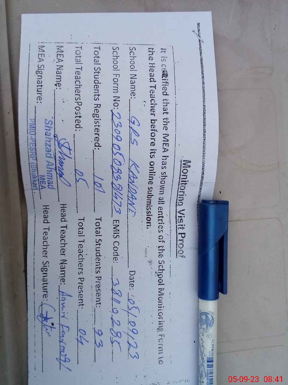 | EMIS Code: 38110285 | Name of School: GPS KANDANI | |||