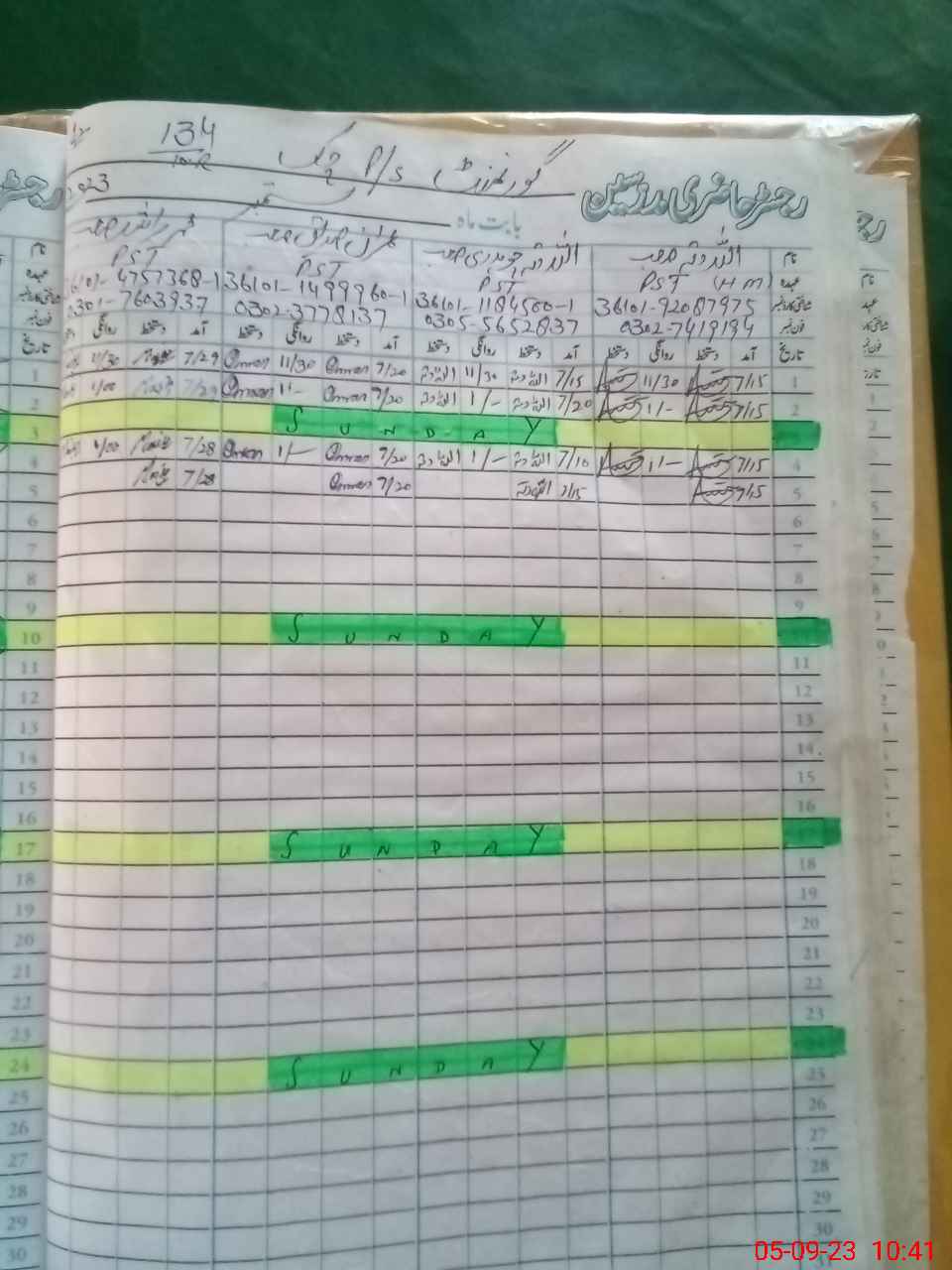 | CNIC | Full Name | Designation | R/C | Absence During Last Calender Month |