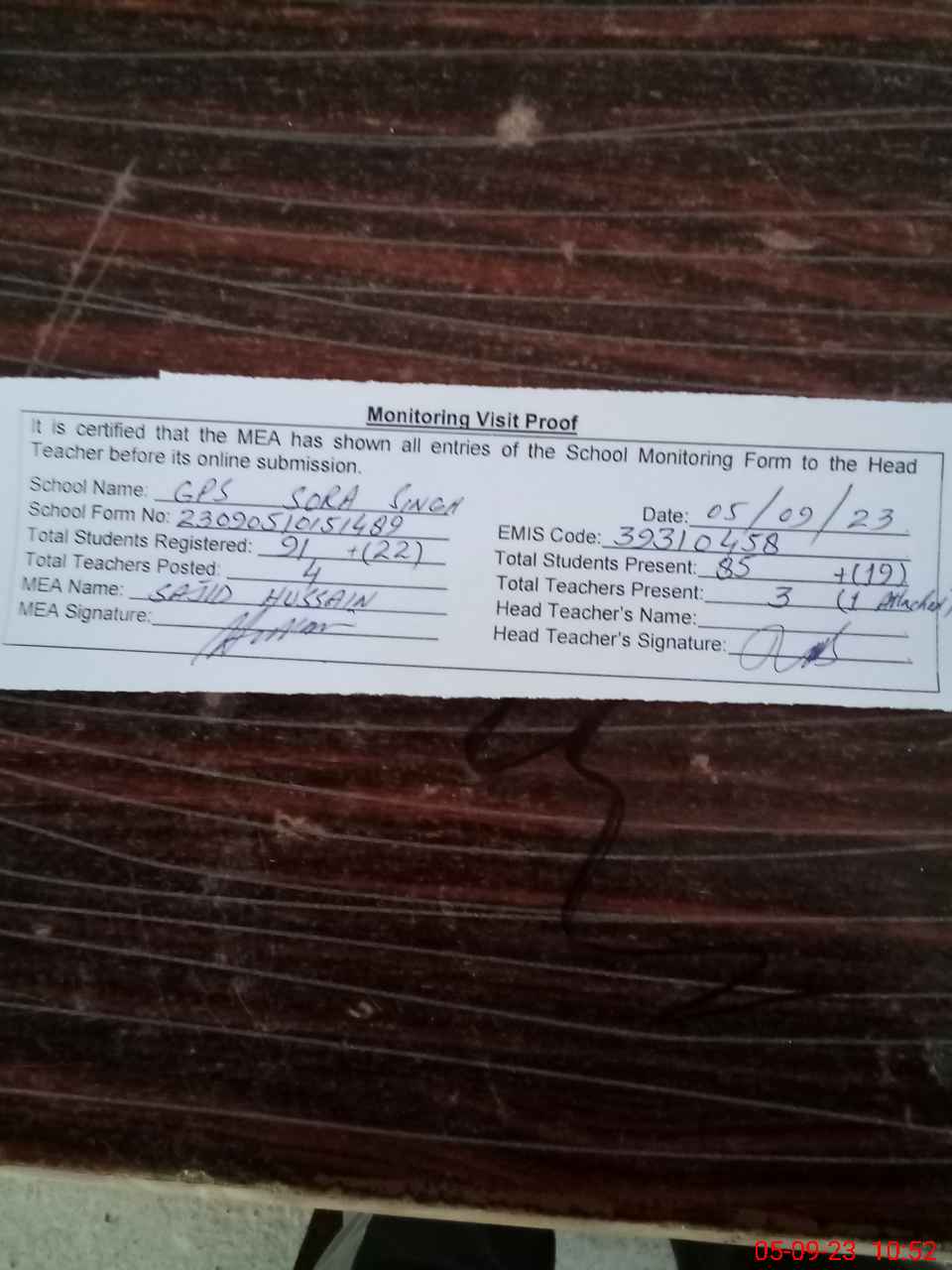 | EMIS Code: 39310458 | Name of School: GPS SORA SINGH | |||