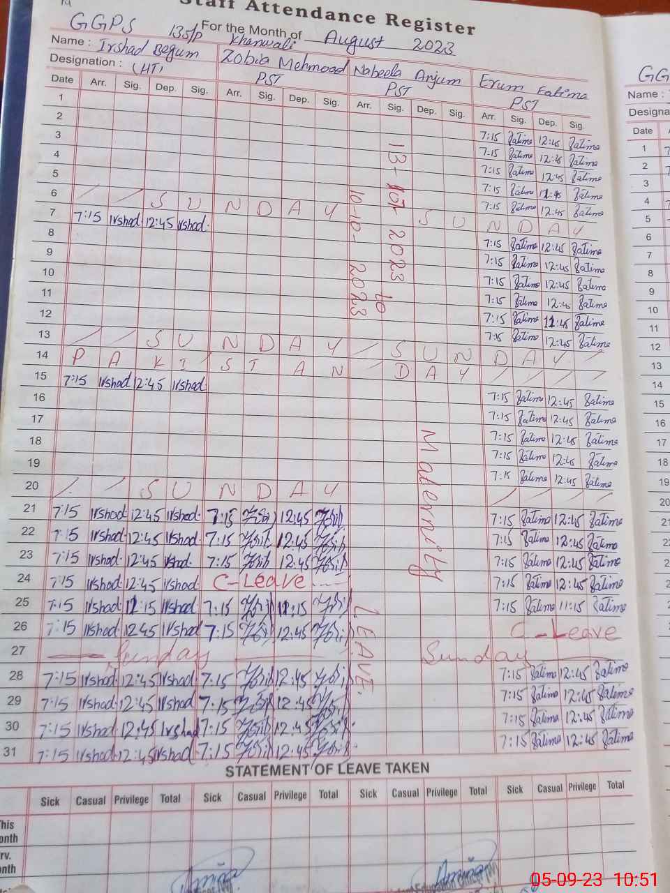 | 31**** | Na**** An**** | PST | Regular | 0 | 0 | 0 | 0 | 0 | 0 | 0 | 0 | 0 | Maternity |