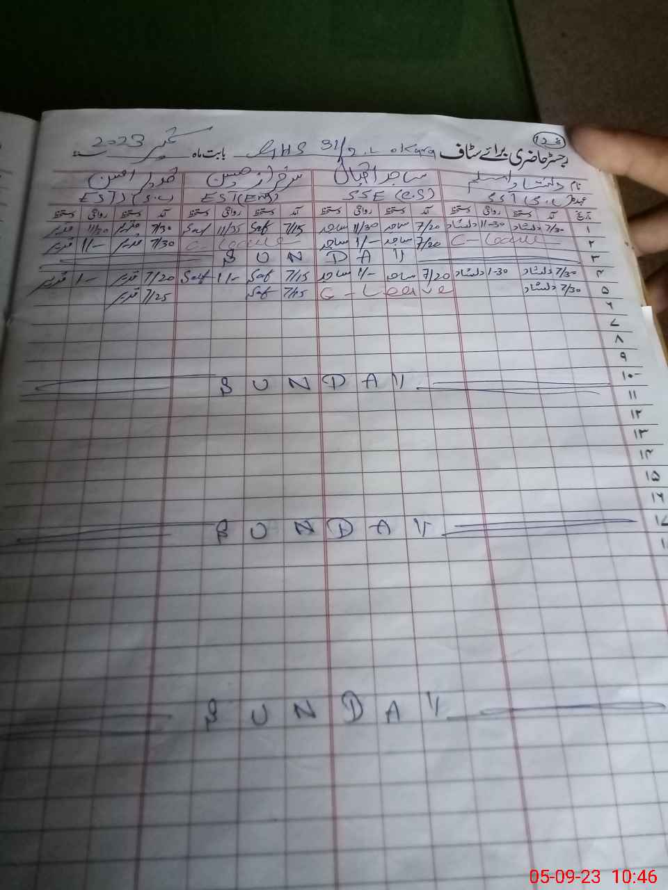 | CNIC | Full Name | Designation | R/C | Absence During Last Calender Month |