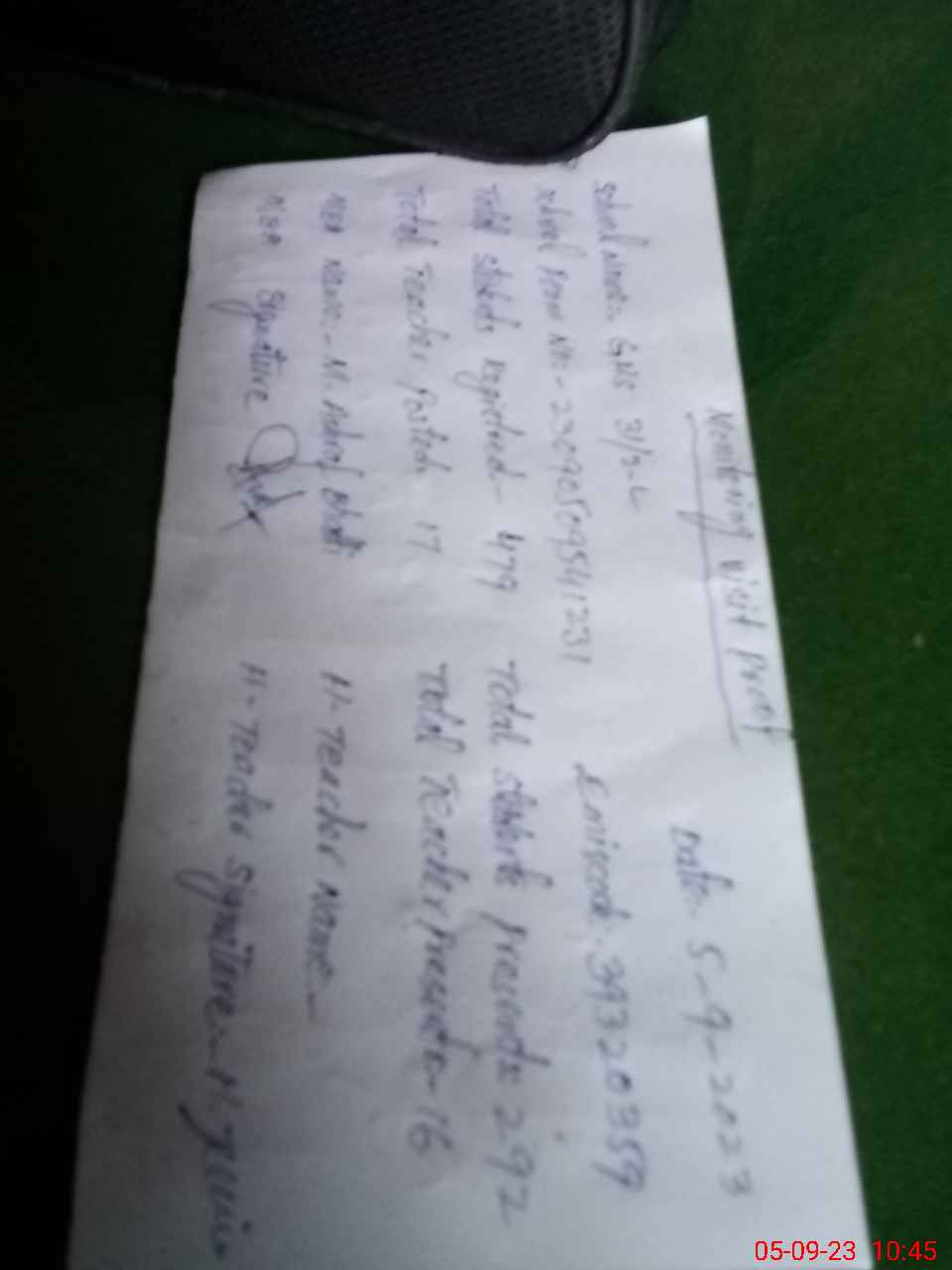 | Attendance Register | Head Teacher | MEA with School | Visit Proof |