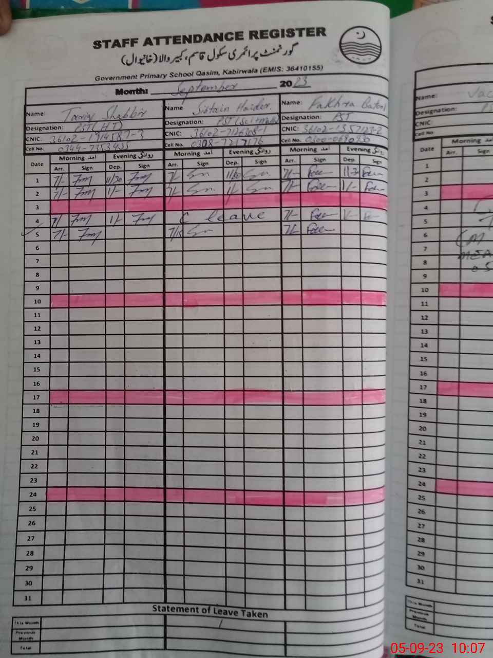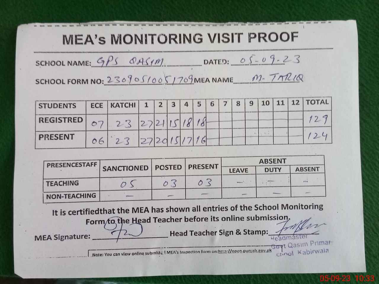 | EMIS Code: 36410155 | Name of School: GPS QASIM KABIRWALA, KABIRWALA | |||