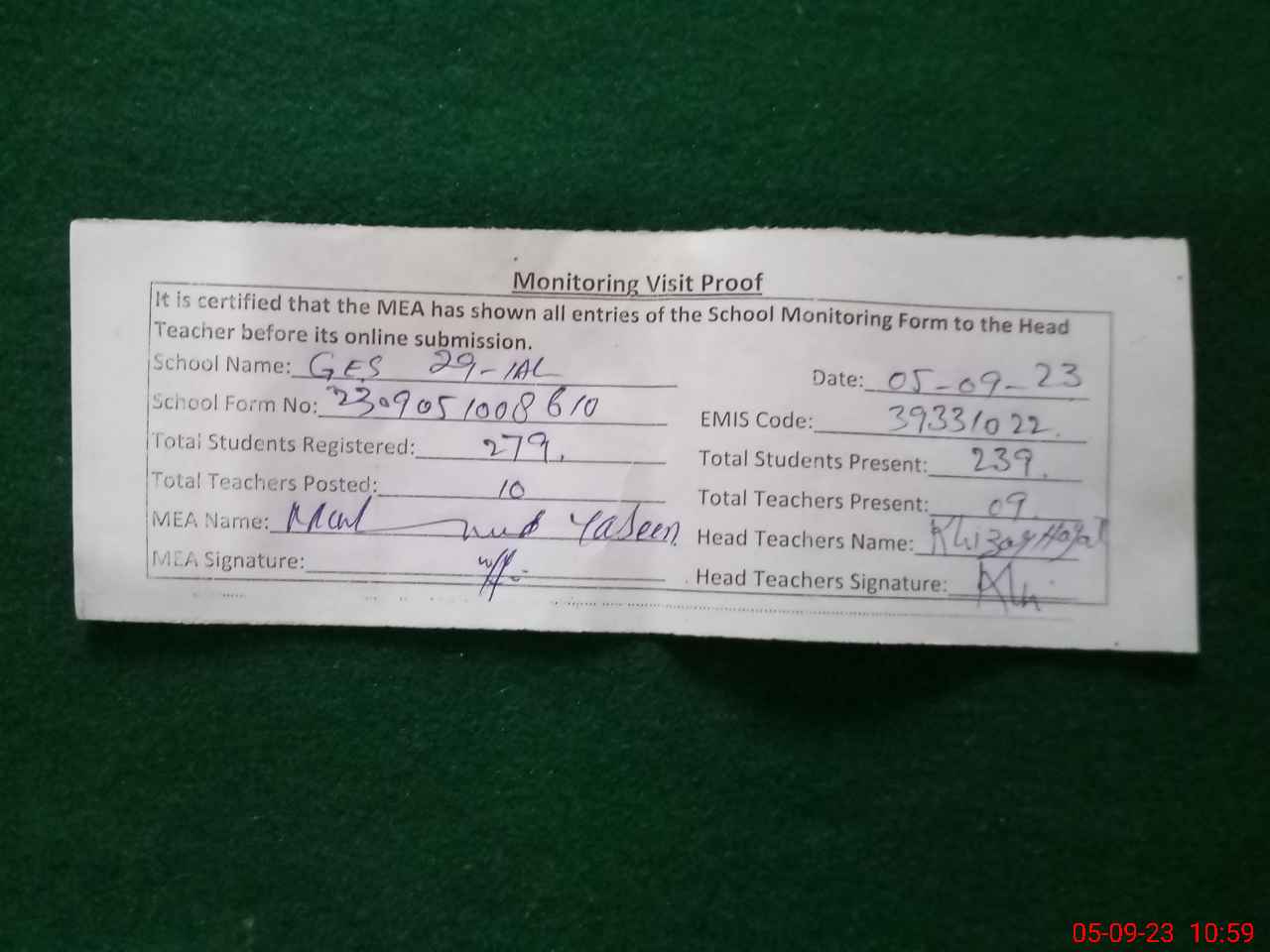 | EMIS Code: 39331022 | Name of School: GES CHAK NO. 29/1-AL | |||