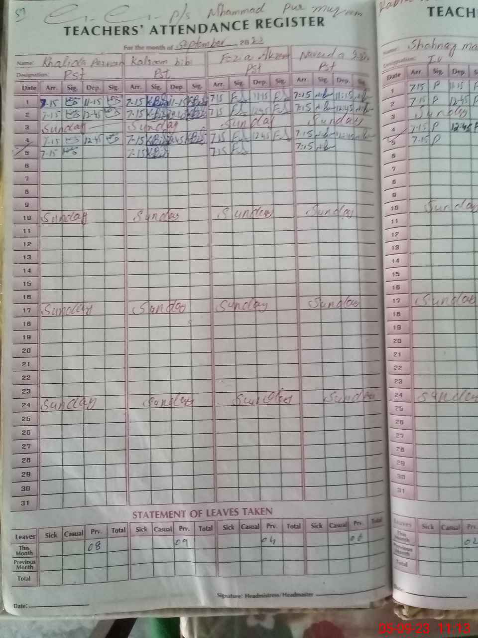 | Name: Na**** Ir**** Designation: (School Headmaster's/Headmistress's) PST Phone/Cell Number: 03**** |
