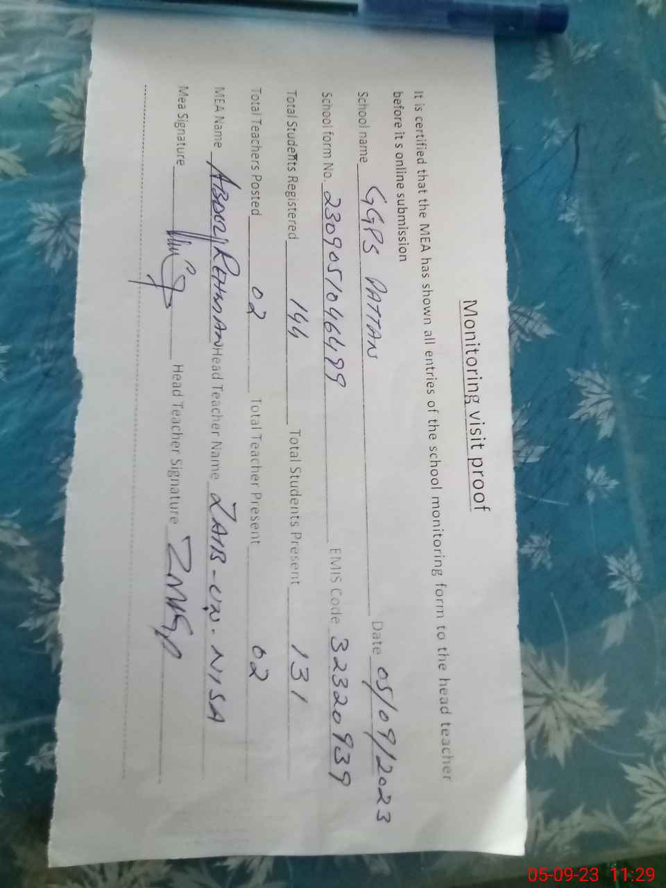 | EMIS Code: 32320939 | Name of School: GGPS PATHAN WALA | |||
