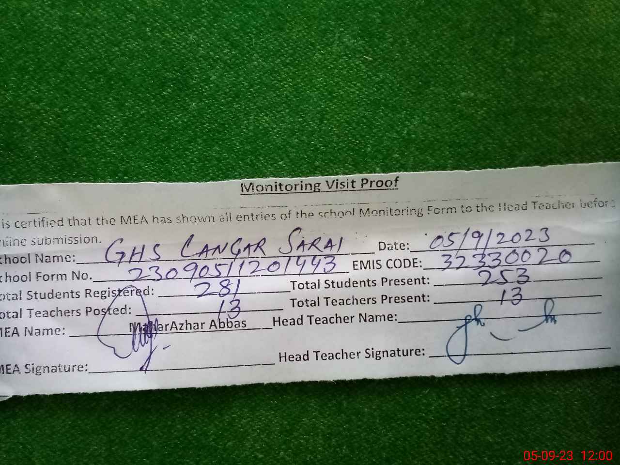 | EMIS Code: 32330020 | Name of School: GHS LANGER SARAI | |||