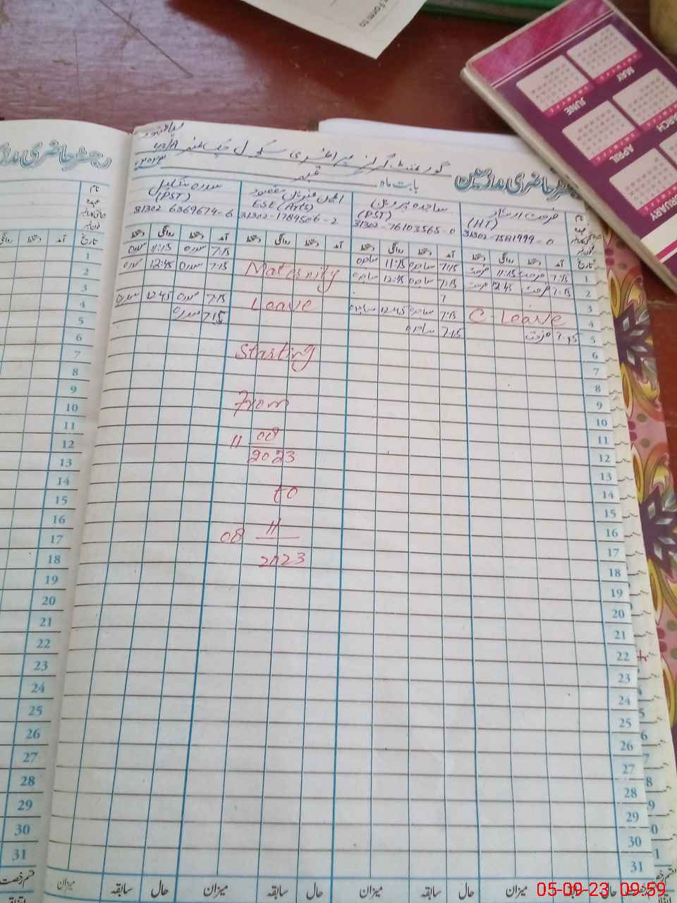 | Leave | Duty | Absent | Maternity | Medical | Ex- Pak |