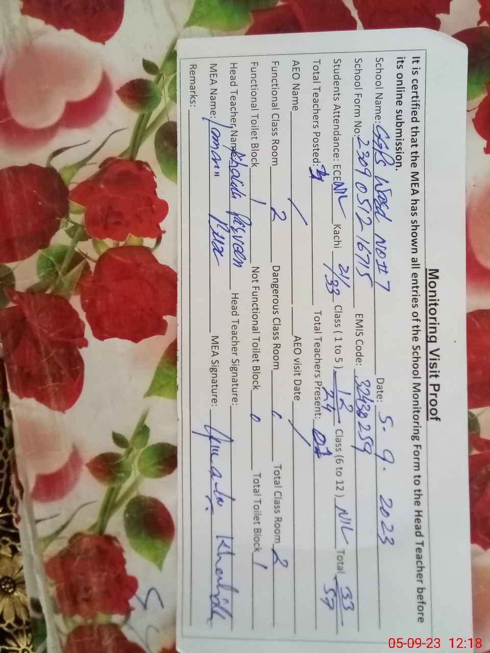 | EMIS Code: 32430259 | Name of School: GGPS WARD NO. 7 ROJHAN | |||