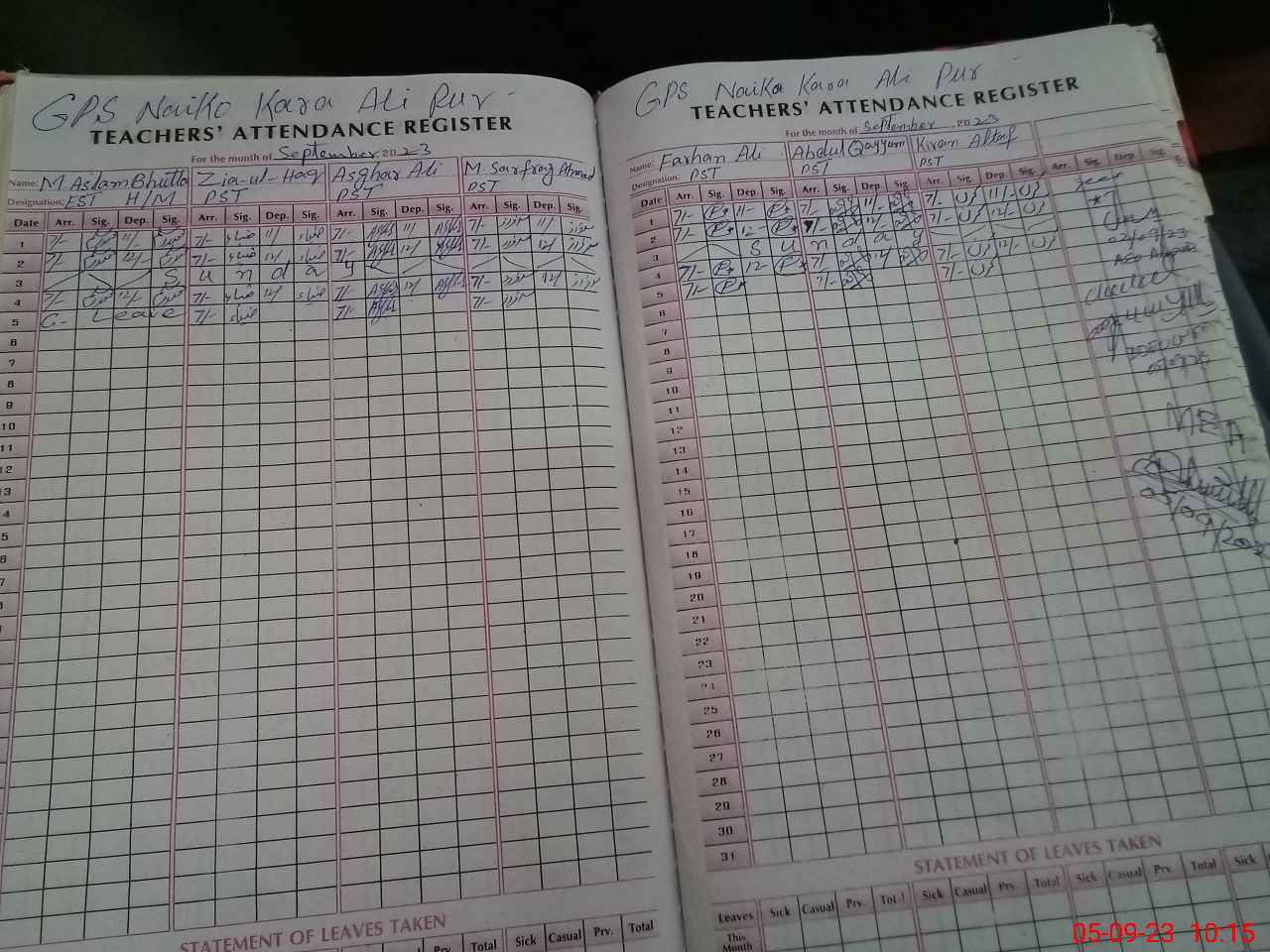 | Monitoring Date: 05-09-2023 | Start Time: 05-09-2023 09:40 AM | End Time: 05-09-2023 10:22 AM | Name of MEA: Gh**** Al**** | |