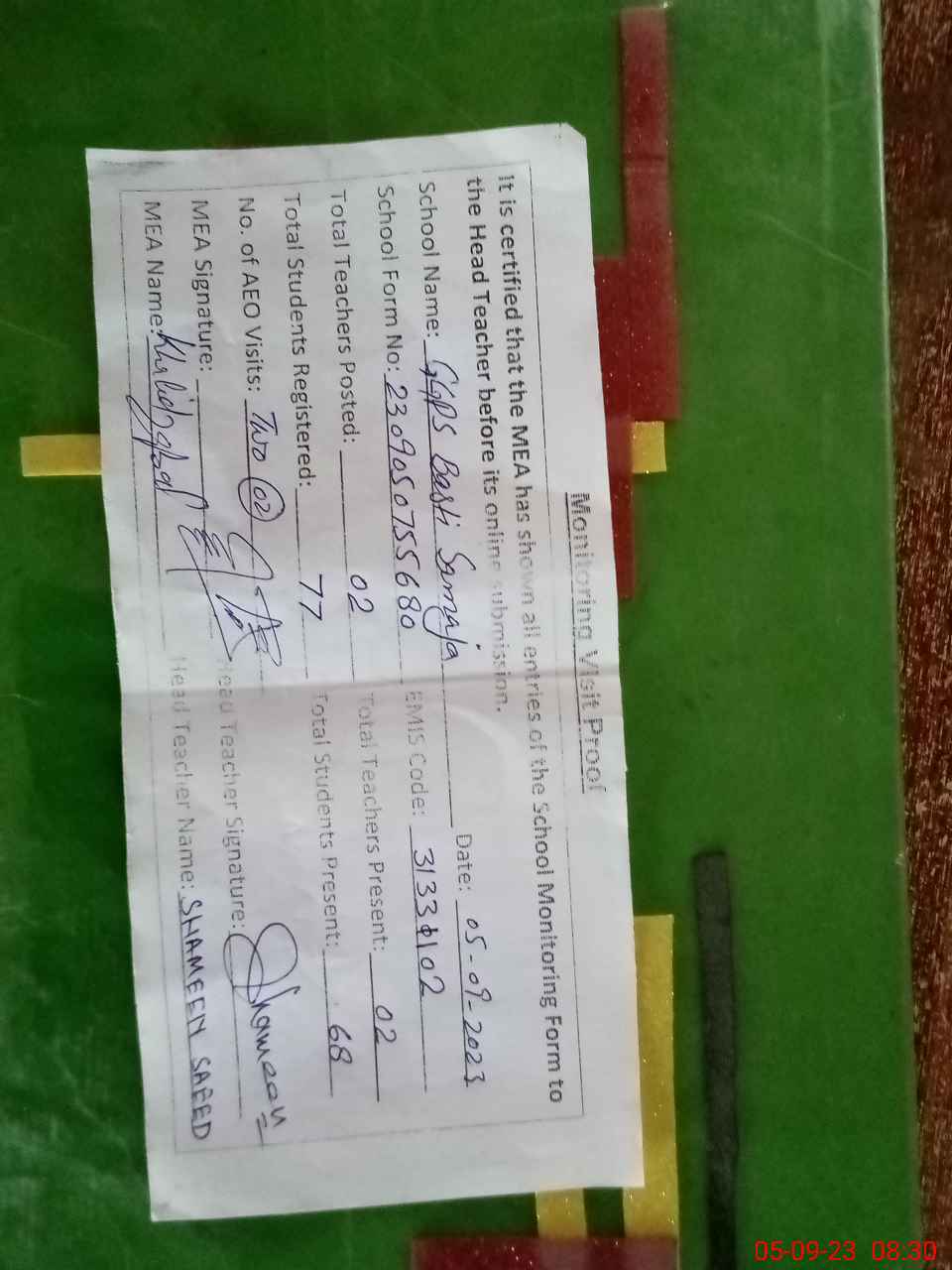 | Certified that this School was Inspected by the Undersigned MEA/DMO Today and the Information Stated Above is as Per Record. | |||||