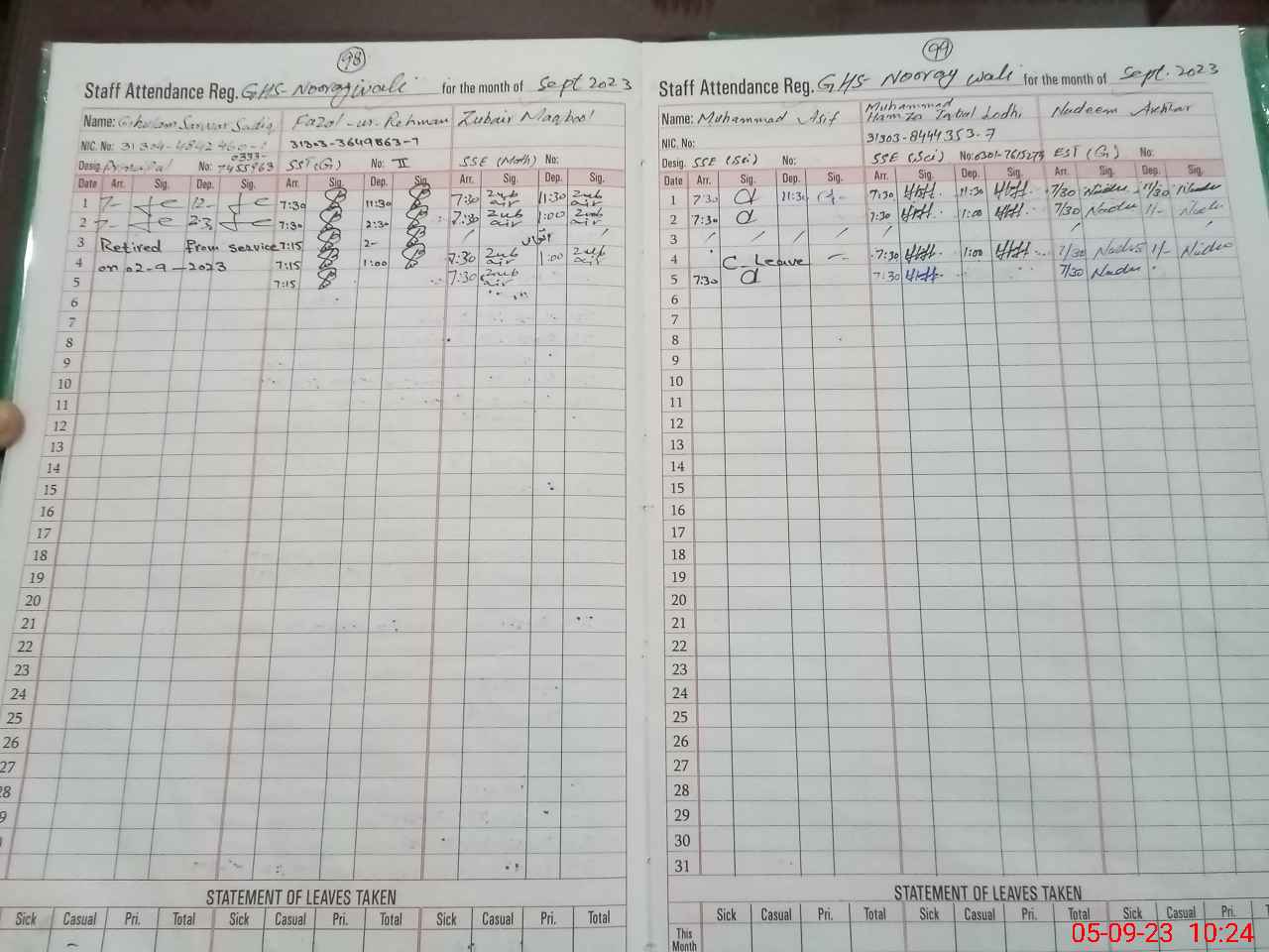 | CNIC | Full Name | Designation | R/C | Absence During Last Calender Month |