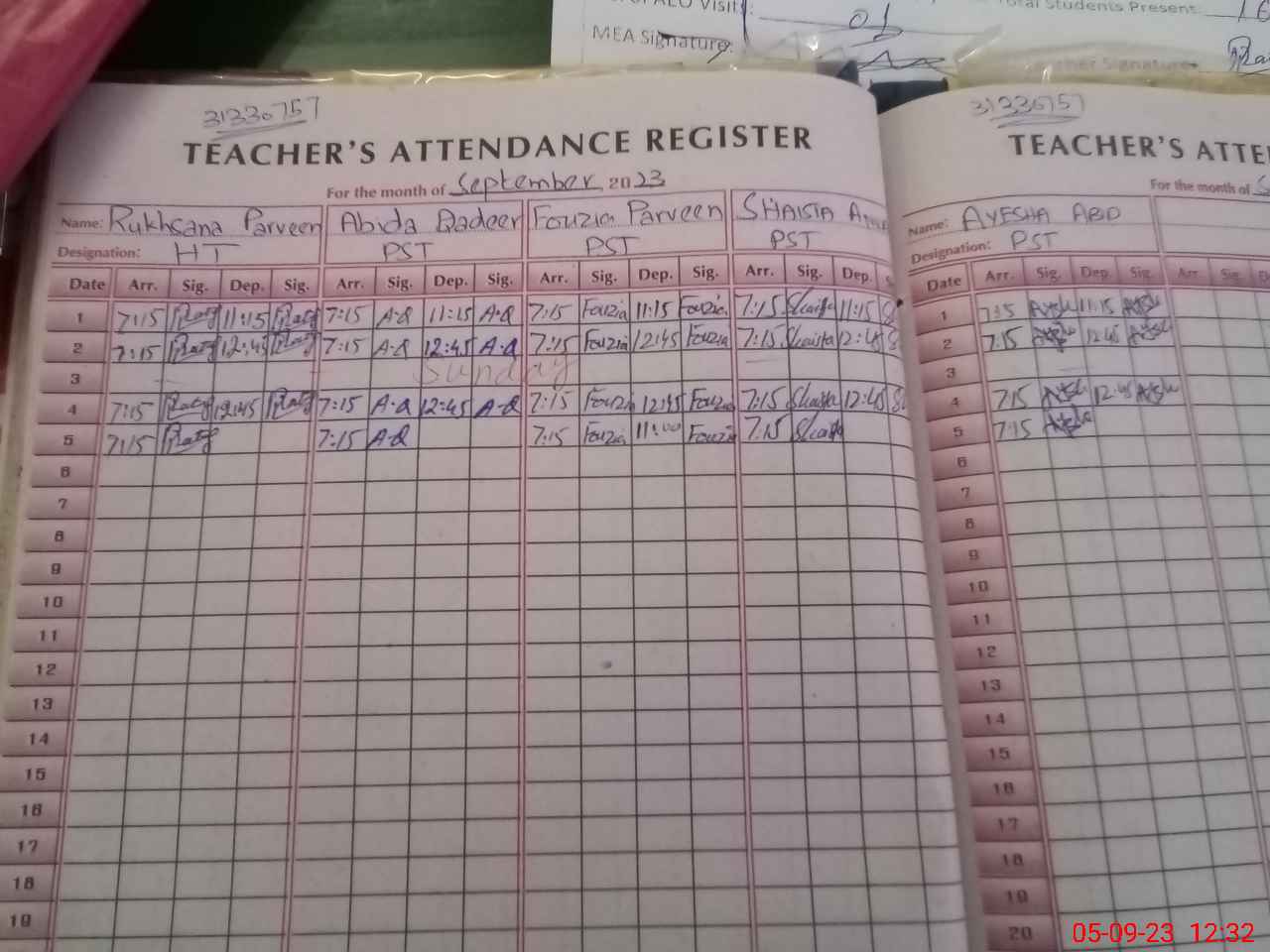 | Attendance Register | Head Teacher | MEA with School | Visit Proof |