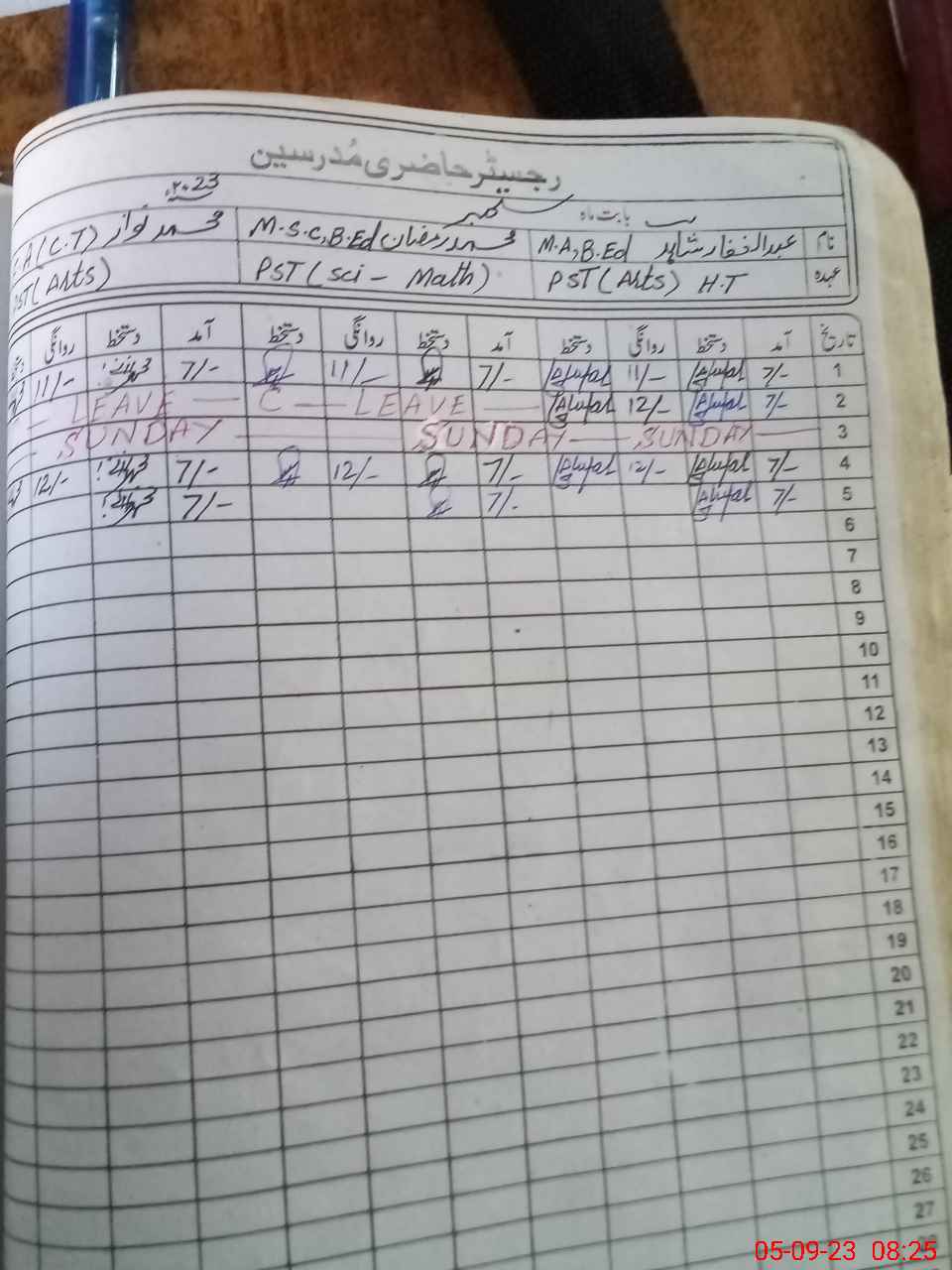 | Name: ZA**** GH**** SH**** Designation: (School Headmaster's/Headmistress's) PST Phone/Cell Number: 03**** |