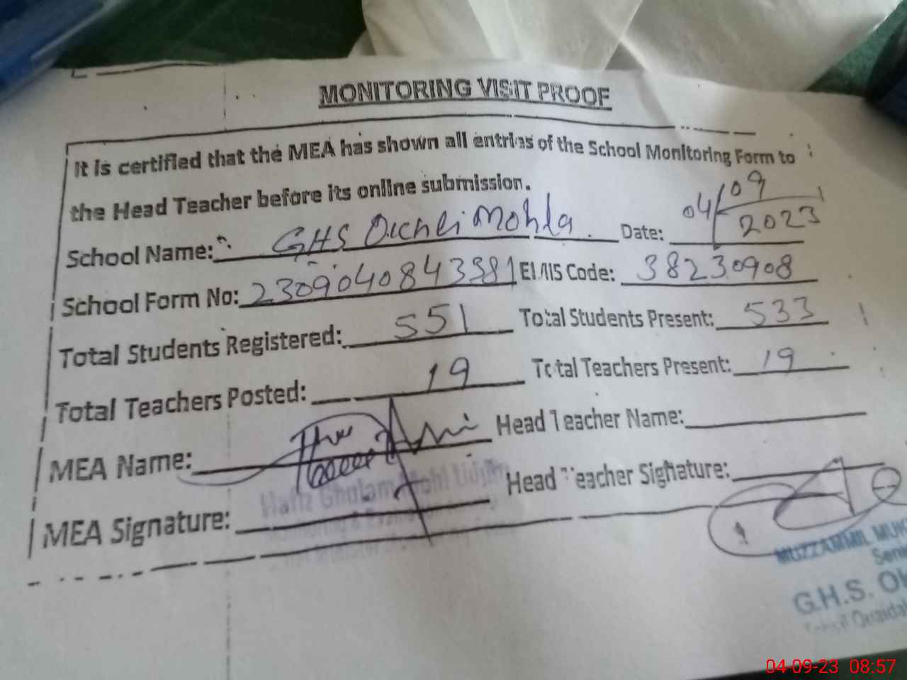 | EMIS Code: 38230908 | Name of School: GHS OKHLI MOHLA | |||