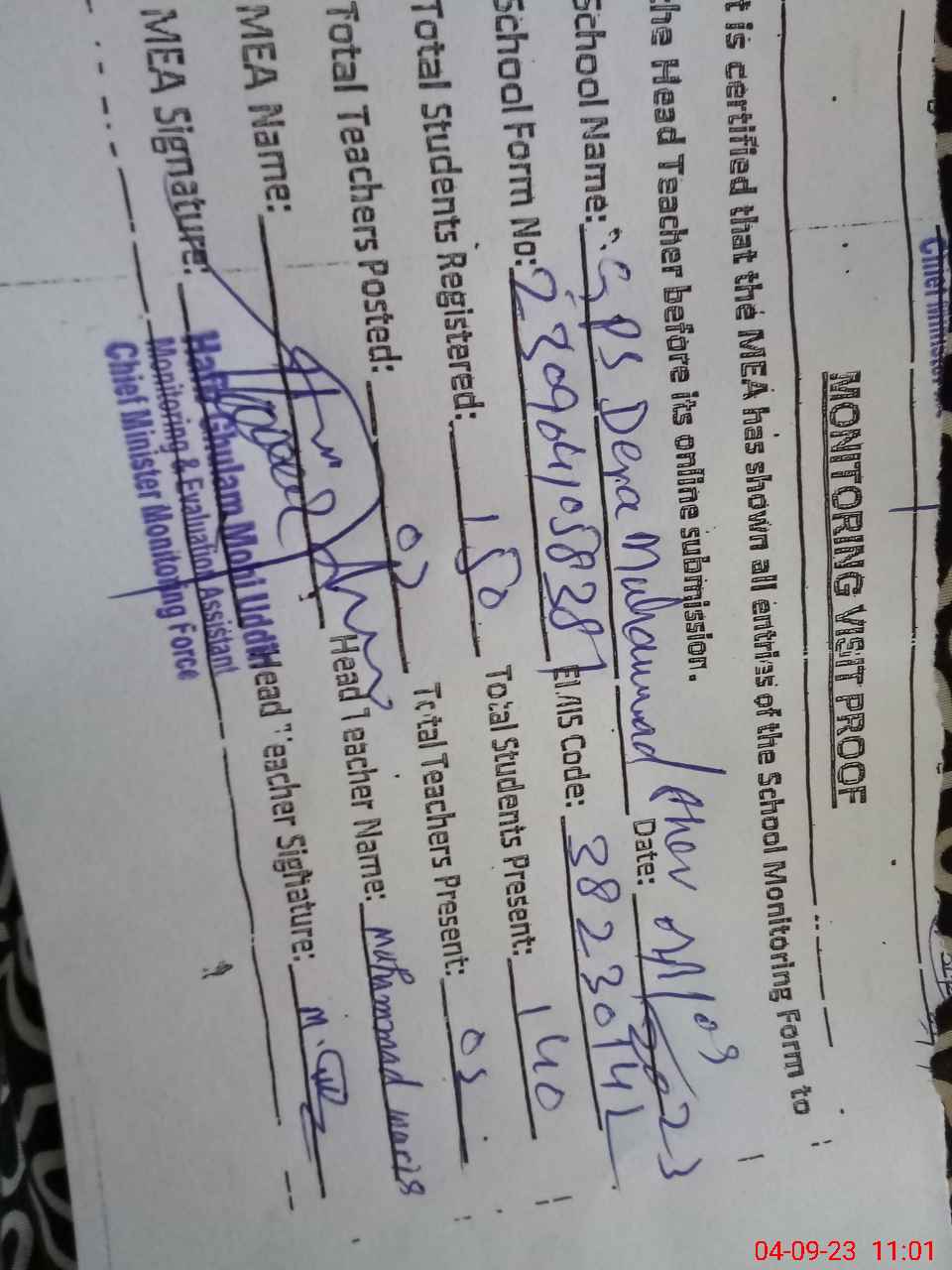 | EMIS Code: 38230142 | Name of School: GPS DERA MUHAMMAD SHER | |||