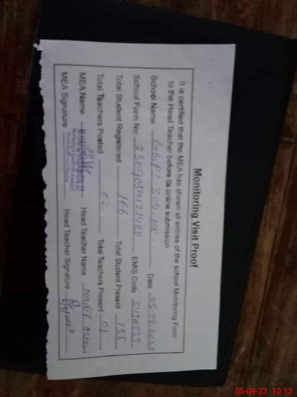 | Certified that this School was Inspected by the Undersigned MEA/DMO Today and the Information Stated Above is as Per Record. | |||||