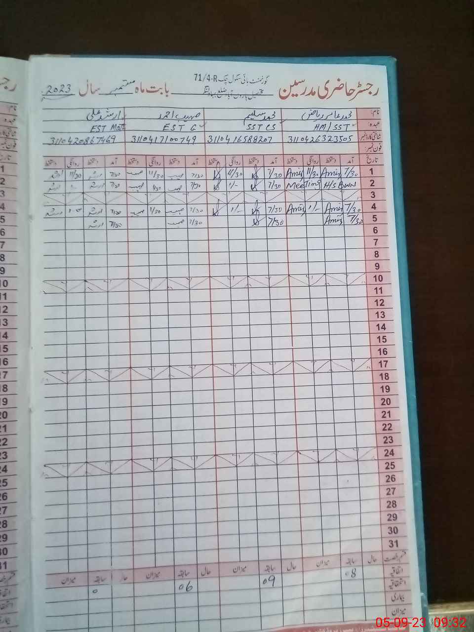 | Name: Mu**** Na**** La**** Designation: (School Headmaster's/Headmistress's) HM Phone/Cell Number: 03**** |